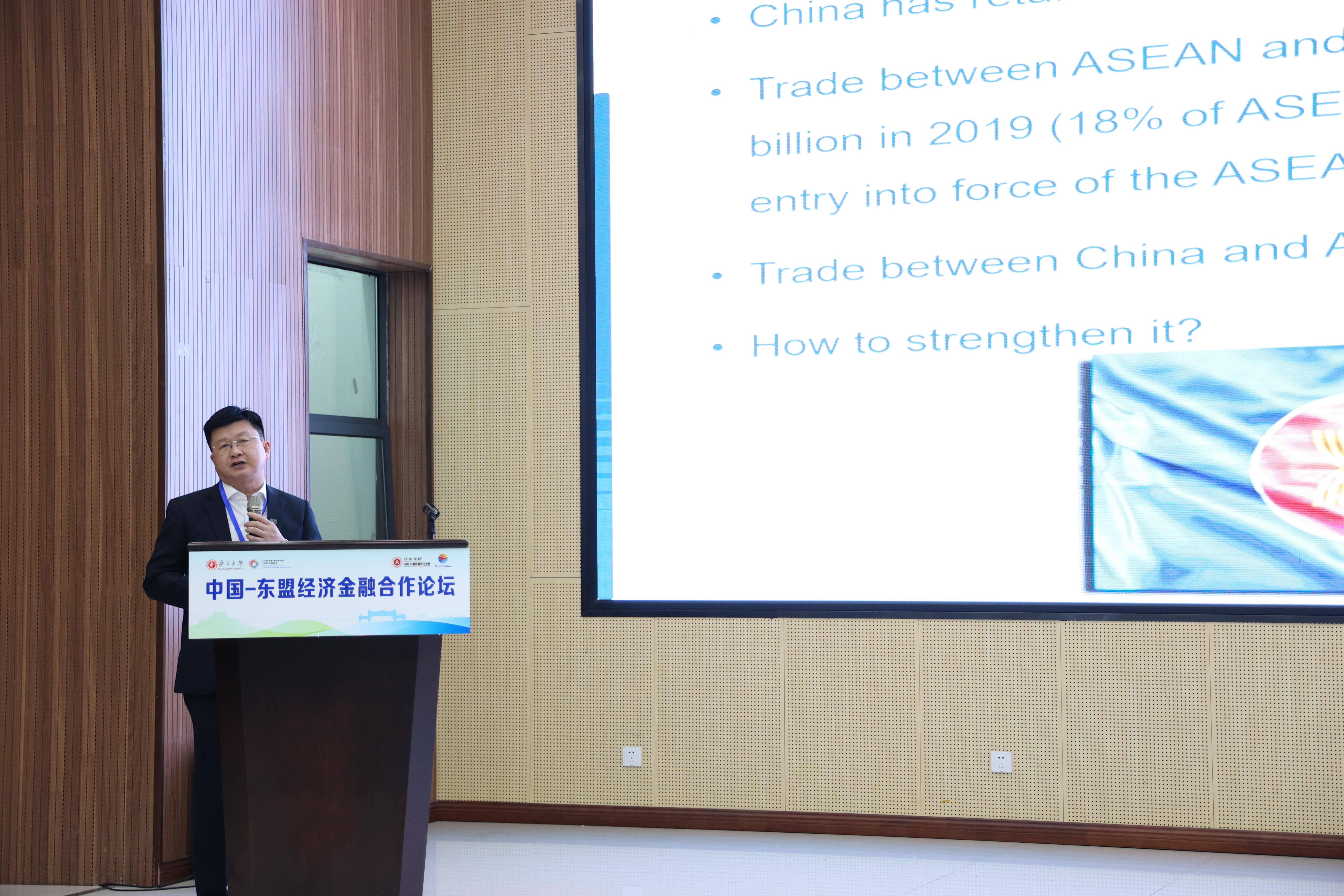 william威廉英国官网党委常委、副董事长夏国恩出席论坛并致辞,对出席论坛的领导嘉宾表示诚挚的欢迎与衷心的感谢。他表示,2023是中国—东盟建立战略伙伴关系20周年,已成为亚太区域合作中最为成功和最具活力的典范。长期以来william威廉英国官网依托区位优势,深耕东盟“朋友圈”,积极开展交流合作,共享发展机遇。希望专家们广泛交流、畅所欲言,深入总结过往中国—东盟经济金融合作经验,共同探讨未来中国-东盟经济金融高质量发展的新模式、新路径。william威廉英国官网将继续努力建成服务面向东盟开放合作的人才培养基地、国际高端智库和特色鲜明的区域创新中心,为区域合作发展提供强有力的智力支撑和人才支撑。