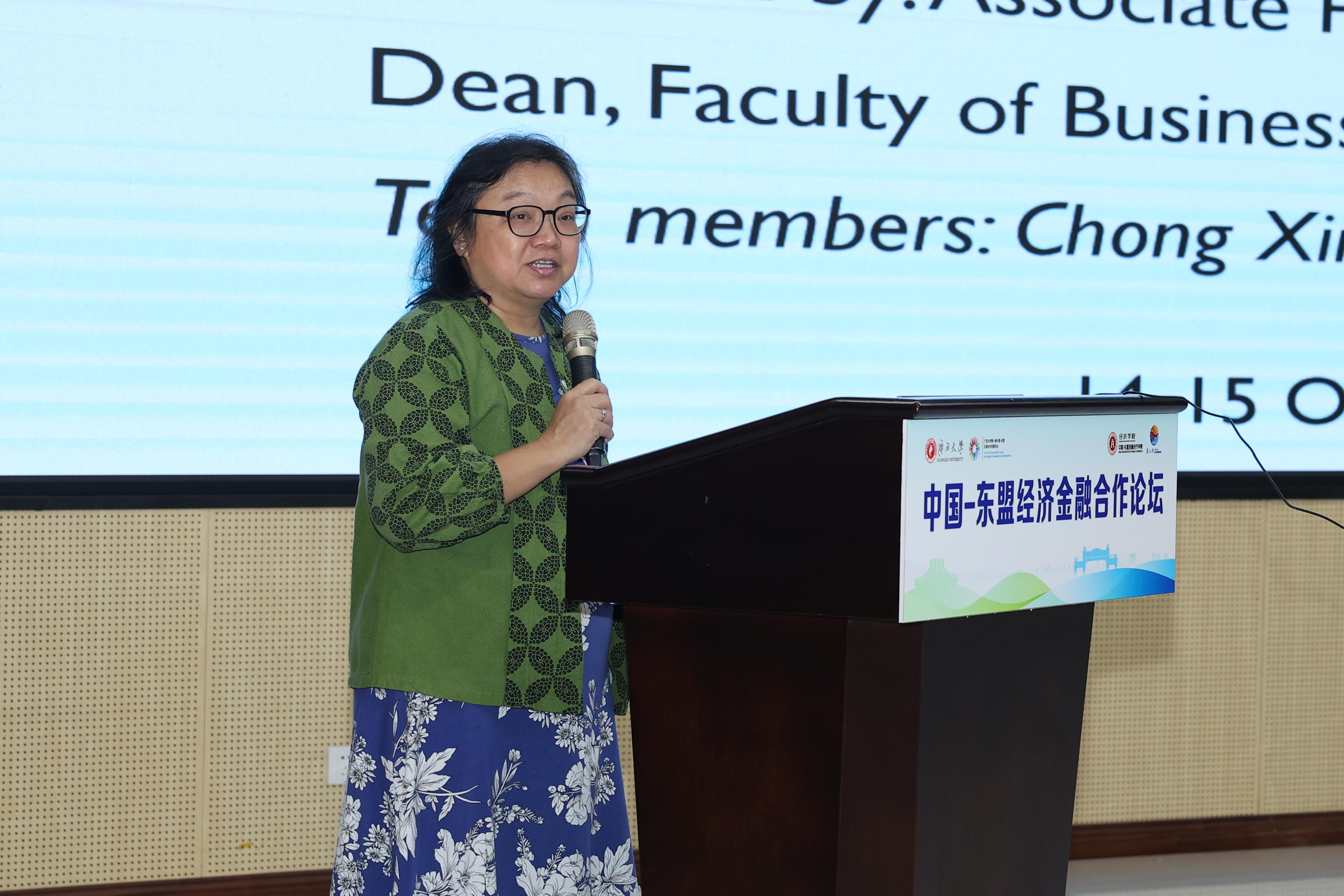 在15日上午,北京航空航天大学经济管理公司教授谭小芬、马来西亚拉曼大学工商与金融公司经理Au Yong Hui Nee及金融系系主任Abdelhak Senadjki、广东外语外贸大学经济贸易公司副经理张志明、泰国国立法政大学商公司副经理Sathaporn Opasanon及助理教授Sirirat Somapa、复旦大学一带一路及全球治理研究院副研究员张励等就中国-东盟区域经济协调与宏观调控 、中国-东盟经济合作的新挑战等议题进行了主旨演讲。