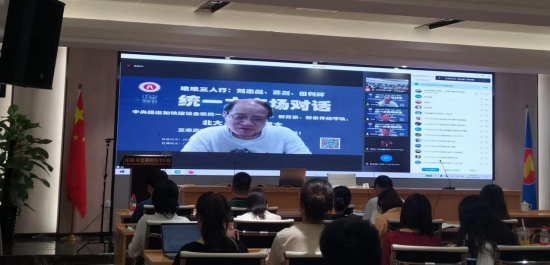 会上,田利辉、刘志彪和苏剑围绕“建设全国统一大市场”这一主题,运用经济学理论知识,列举大量数据、案例,对当前经济形势以及未来经济发展新趋势、新格局、新特点进行了精彩分析,并就当前广西面临的机遇和挑战及应对策略进行了深入研判。媒体记者和公司师生还就广西在统一大市场中的战略定位、卢卡斯悖论与统一市场的内在矛盾等问题提问,进行研讨。