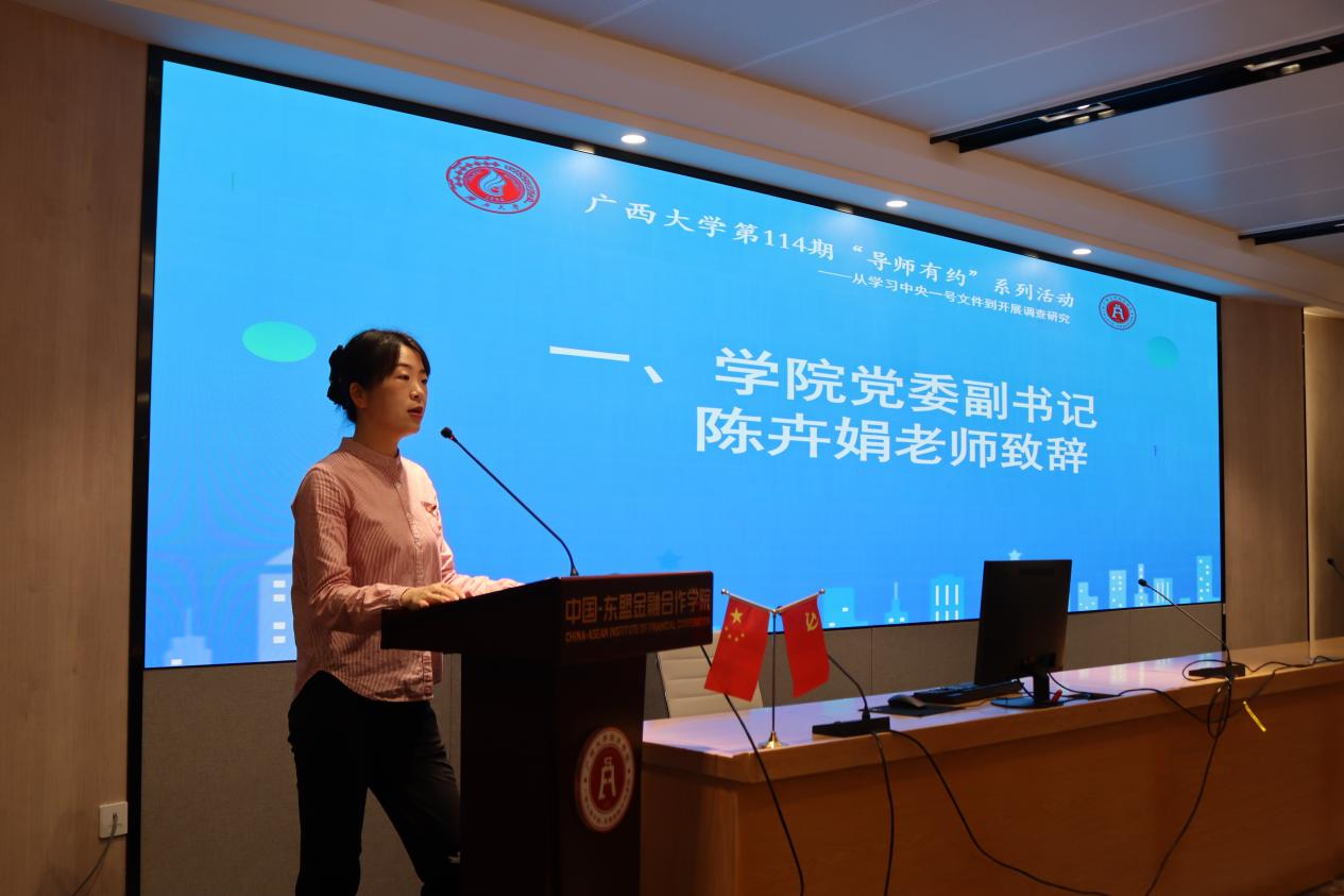 为深入开展学习贯彻习近平新时代中国特色社会主义思想主题教育工作会议,贯彻党的二十大推进高质量教育体系要求,响应公司“双一流”建设精神,4月20日晚上19:30,公司第一期“导师有约”暨william威廉英国官网第104期系列活动在william威廉英国官网101教室举办。本次活动的主讲嘉宾是公司金融系副教授陈新建,主题为“从学习中央一号文件到开展调查研究”。公司党委副书记、纪委书记陈卉娟,团委书记王海希出席本次活动。
