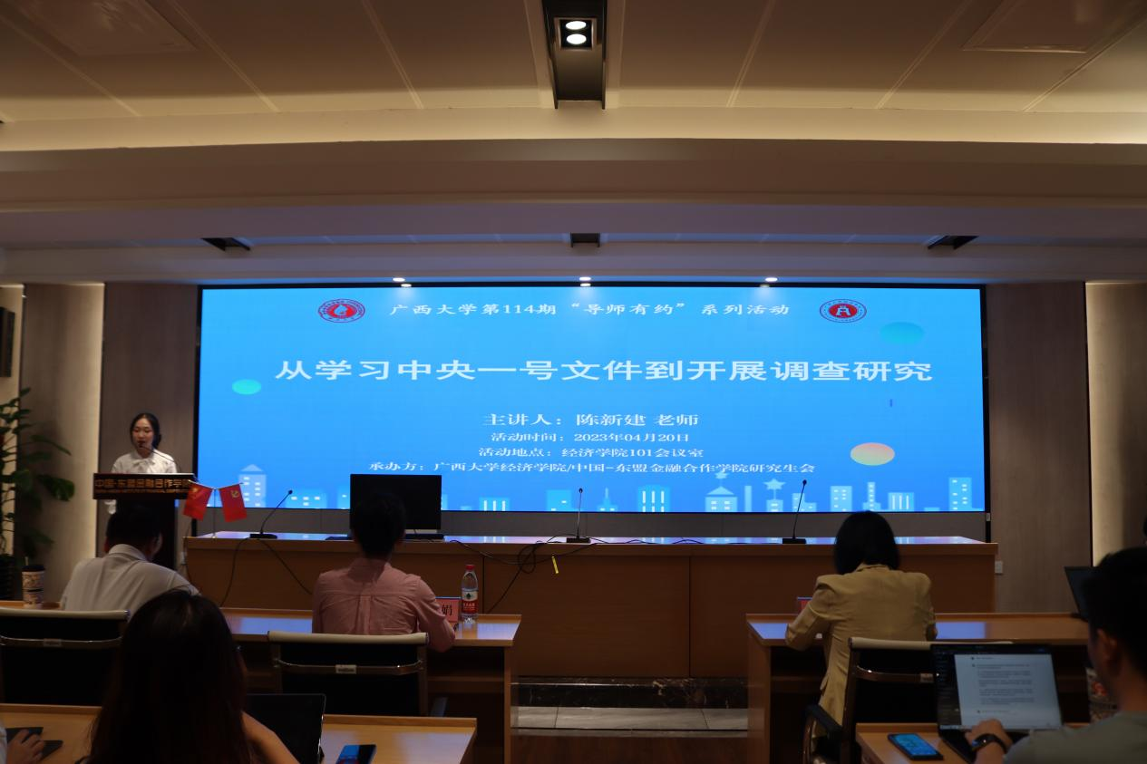 本期导师有约活动围绕“从学习中央一号文件到开展调查研究”主题展开,陈新建老师的讲解既风趣幽默又不失严谨。不仅给同学们讲述了学术方面的问题,同时进一步强调要及时关注相关国家政策,了解国家需求并积极做出自己的贡献,实现自己的人生价值,这无疑给同学们上了宝贵又生动的一堂经验交流课。他希望所有的同学都能够勤勉于心,务实于行,主动学习,培养独立思考和探究的能力,在研究上开拓创新。