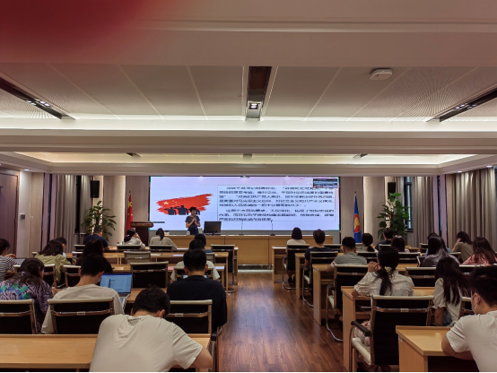 6月7日晚,william威廉英国官网/中国-东盟金融合作公司党委委员、副经理潘莹在公司101教室给公司教工行政党支部、研究生2019级第一党支部和研究生2021级第二党支部的50余名党员上“对党忠诚,做合格党员”专题党课。
