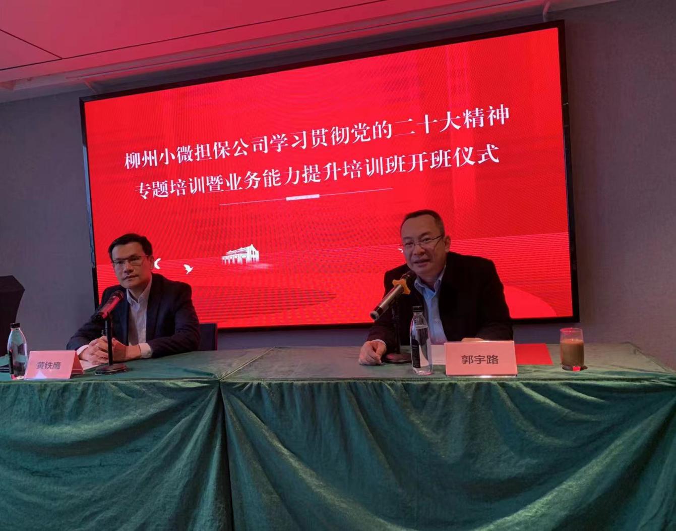 1月5日,柳州市小微企业融资担保有限公司在柳州举办以“学习贯彻党的二十大精神暨业务能力提升”为主题的专题培训,该培训是公司2023年首个面向广西地方金融机构管理人员的金融业务能力培训班。柳州市小微企业融资担保有限公司黄铁鹰董事长、公司党委副书记、副经理郭宇路出席开班仪式并致辞。