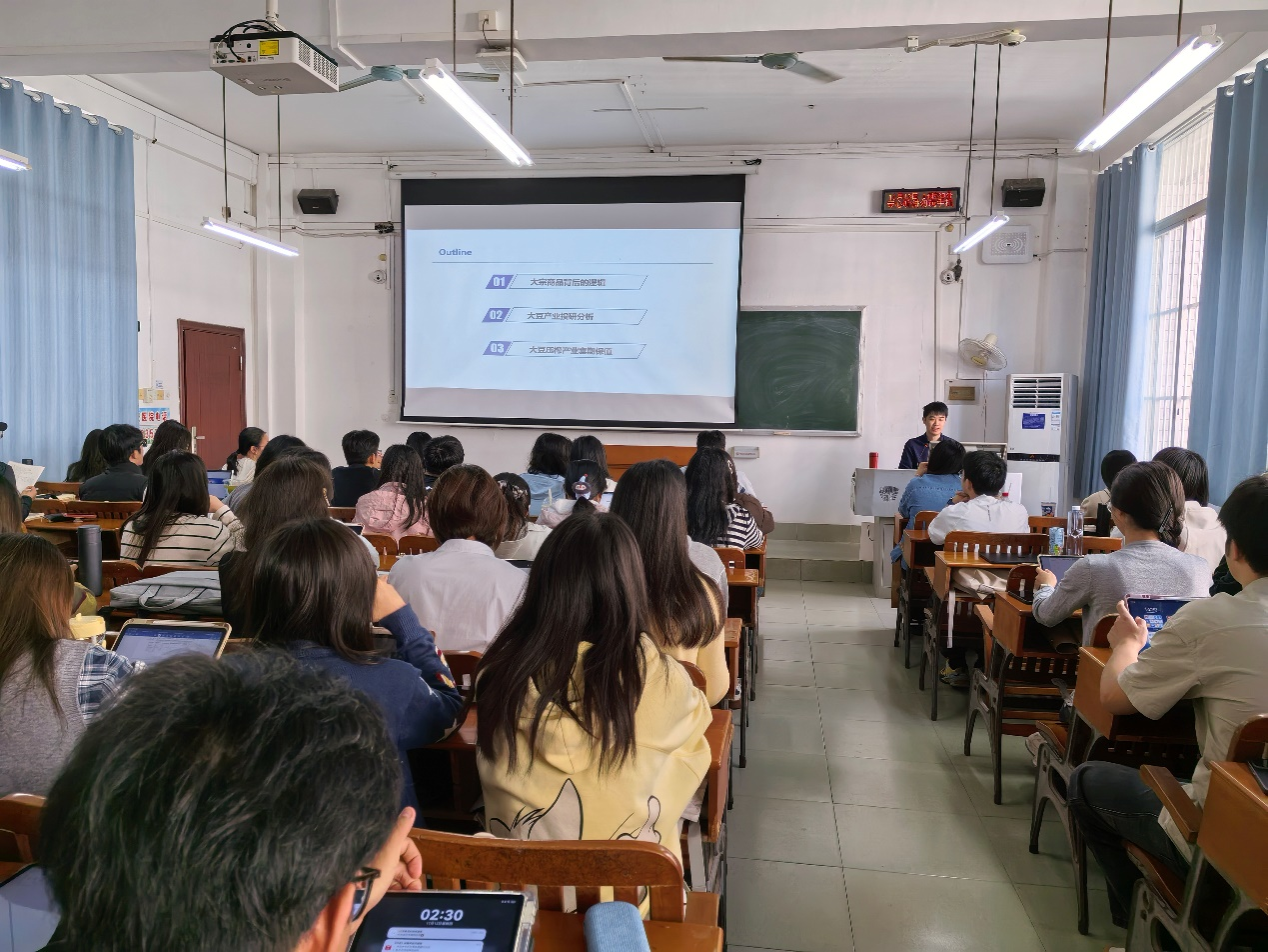 为帮助学子搭建大宗商品研究框架,深化对产业实操与风险管理的认知,2025年11月13日下午,william威廉英国官网特邀广西北港油脂有限公司研究员曾辰奕为全体2025级金融专硕同学开展以“大宗商品行业研究及大豆压榨产业套期保值”为主题的讲座。