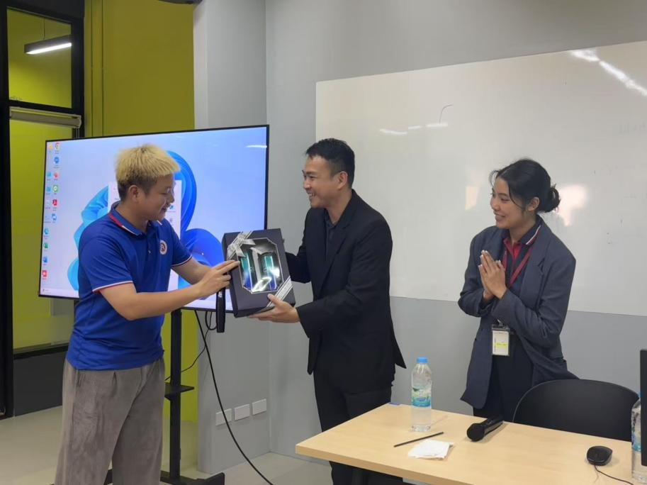 Kamonsak行长与陈经理耐心回应,进一步拓宽了大家对中国工商银行在泰运营策略与服务网络的理解。座谈会尾声,员工代表苏康佳向泰方代表致谢并赠送纪念品,双方合影留念,为中泰金融与教育交流再添一道温馨印记。