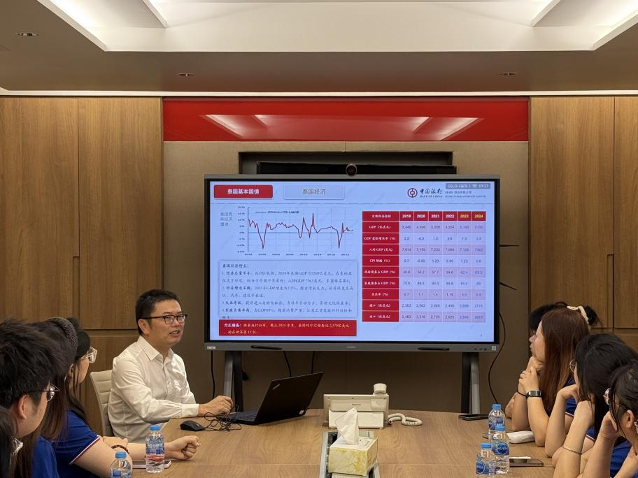 首站访学团来到中国银行清迈分行,行长杨辉球对师生们的到来表示热烈欢迎。座谈会上,杨行长从泰国宏观经济现状与投资政策环境切入,系统介绍了中国银行在泰发展历程、业务特色及其在促进中泰经贸往来中发挥的桥梁作用。他就跨境汇款、人民币与泰铢兑换、跨境支付服务等员工关切的话题作了细致讲解,并突出介绍了针对中国赴泰投资、工作和生活人群的定制化金融服务,展现中行服务的“中国特色”与“泰国温度”。