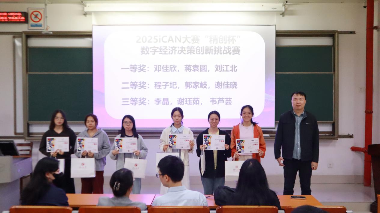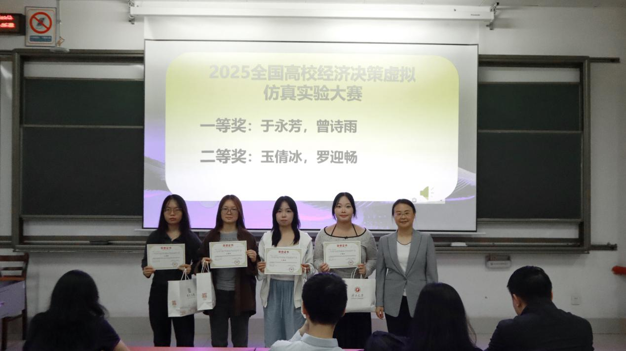 随后,举行表彰和颁奖仪式。公司对在“经济新星” 大赛、2025iCAN大赛“精创杯”数字经济决策创新挑战赛,以及2025全国高校经济决策虚拟仿真实验大赛中表现突出的同学进行了表彰,并颁发荣誉证书,以此充分肯定他们在学术创新与实践探索过程的努力与优异成果。其中,“经济新星”大赛为本专业举办的赛事,旨在提高同学们关注现实经济发展能力,增强实践和研究水平,分为课程案例、调查报告和学术论文三个赛道,至今已举办了第三届。