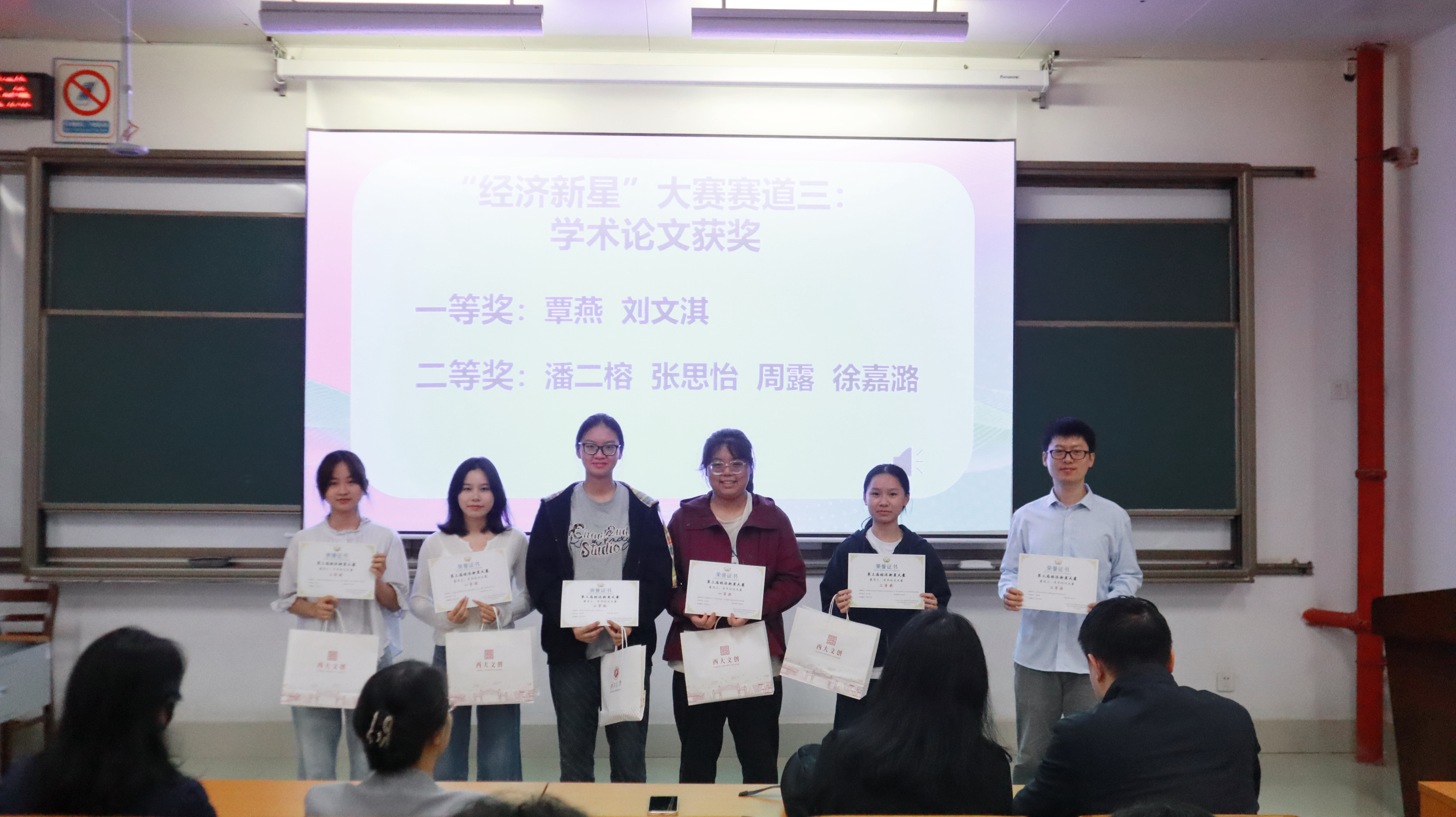 为进一步加强经济学专业不同年级同学之间的学习交流,表彰优秀学子,营造积极向上的学风院风,公司于2025年10月31日举办了“2025年度经济学专业跨年级交流大会暨第三届经济新星大赛颁奖仪式”。本次活动由经济学专业各年级联合主办,经理助理覃诚、经济学系主任郭南芸、彭晴、黄天宇、苗璐等经济学专业教师、指导老师及各年级经济学专业、创培班经济学方向的同学参与本次活动。