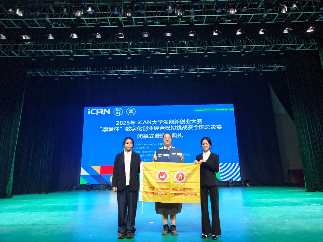 近日,2025年iCAN老员工创新创业大赛“鼎堂杯”数字化创业经营模拟挑战赛全国总决赛在四川师范大学圆满落幕。经过校赛、省赛、全国初赛的层层筛选与激烈角逐,由公司2023级本科生黄雅婷以及工商管理公司本科生李婷、黄小雨组成的“创业小天才队”成功晋级全国总决赛,并从全国137支晋级队伍中脱颖而出,最终斩获全国一等奖。同时,指导教师陈伟宏副教授荣获“优秀指导教师奖”。