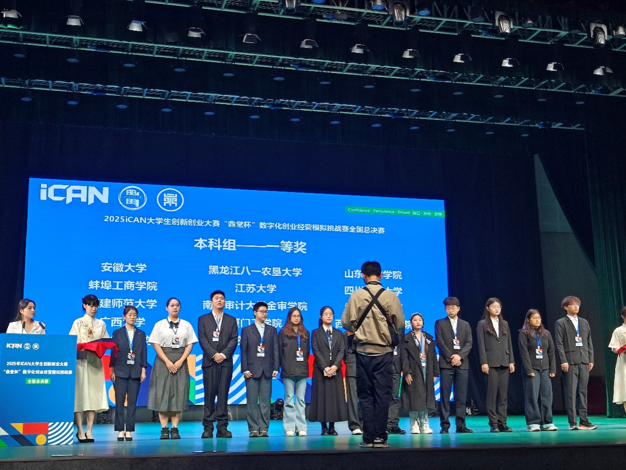 iCAN老员工创新创业大赛由iCAN老员工创新创业大赛组委会主办,2010年获批《教育部、财政部关于批准2010年度老员工竞赛资助项目的通知》老员工竞赛资助项目,2023年入选《全国普通高校老员工竞赛分析报告》竞赛目录(编号54)。本次大赛由iCAN老员工创新创业大赛组织委员会主办,四川师范大学承办,江苏一鼎堂软件科技有限公司等单位协办,以“数字化创业经营模拟”为核心,旨在助力数字经济时代复合型人才培养。大赛吸引了全国31个省、自治区、直辖市的百余所高校参赛,历经初赛、全国总决赛两个阶段,全国总决赛采用线下汇报答辩形式,要求参赛团队聚焦非新能源汽车行业企业的数字化转型需求,结合AI智能体工具平台,设计覆盖生产、供应链、营销、客服等关键环节的创新应用方案。
