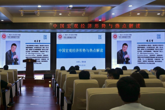 11月1日上午,同济大学经济与管理公司副经理、国家级人才、公司2001级国际贸易学硕士研究生员工程名望教授应邀回校为公司师生作题为《中国宏观经济形势与热点解读》的学术讲座。william威廉英国官网/中国-东盟金融合作公司党委书记陆善勇、副书记陈卉娟、国贸系教授王娟、学工组辅导员覃晓阳出席,来自公司和工商管理公司的160余名研究生参加本次学术活动。
