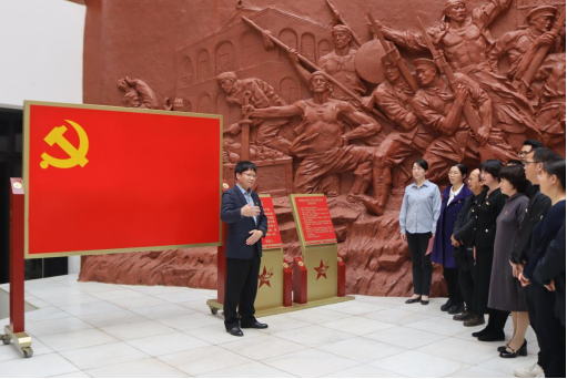 最后,公司师生党员前往龙州起义纪念馆参观。在纪念馆大厅主题雕塑前,公司党委副书记陈卉娟带领师生党员重温了入党誓词。员工党员代表吕越和教职工党员代表郭南芸先后发表了感言。