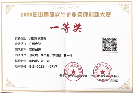 11月25日,2023年中国研究生企业管理创新大赛全国总决赛在上海大学落下帷幕。本届大赛共吸引来自256所公司的2122支队伍报名参赛,经过长达4个月初赛、复赛的激烈角逐,公司师生力争上游,由池武城、文灵有、农怡勉、林一玲组成的“西经创研”代表队,在陈伟宏、刘主光等老师的指导下脱颖而出,成功晋级全国总决赛并获得了赛事最高奖项全国一等奖,另有一个团队获得全国二等奖、三个团队获得全国三等奖。