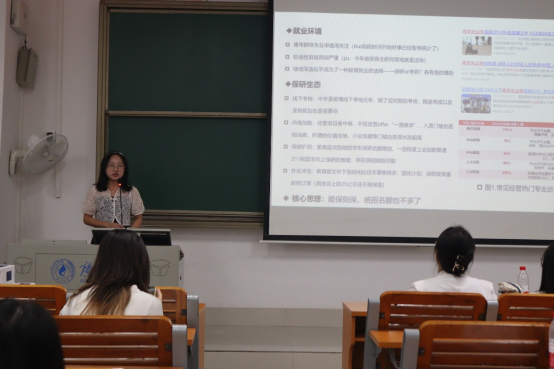 经济20级许婉婷同学从形式分析与保研流程、战前准备与作战经历等方面分享了自己的保研经验。她用真挚的语言传授经验,讲述自己的保研故事,为同学们推荐适合经济学专业上岸的院校,为想保研的同学确定自己的方向、解答困惑。她还建议同学们尽早明确自己的目标,听从自己的内心,为目标奋发向上,敢拼敢闯大胆尝试,勇敢的追求自己的梦想。最后,她祝愿所有想保研的同学都能去到自己心仪的院校。