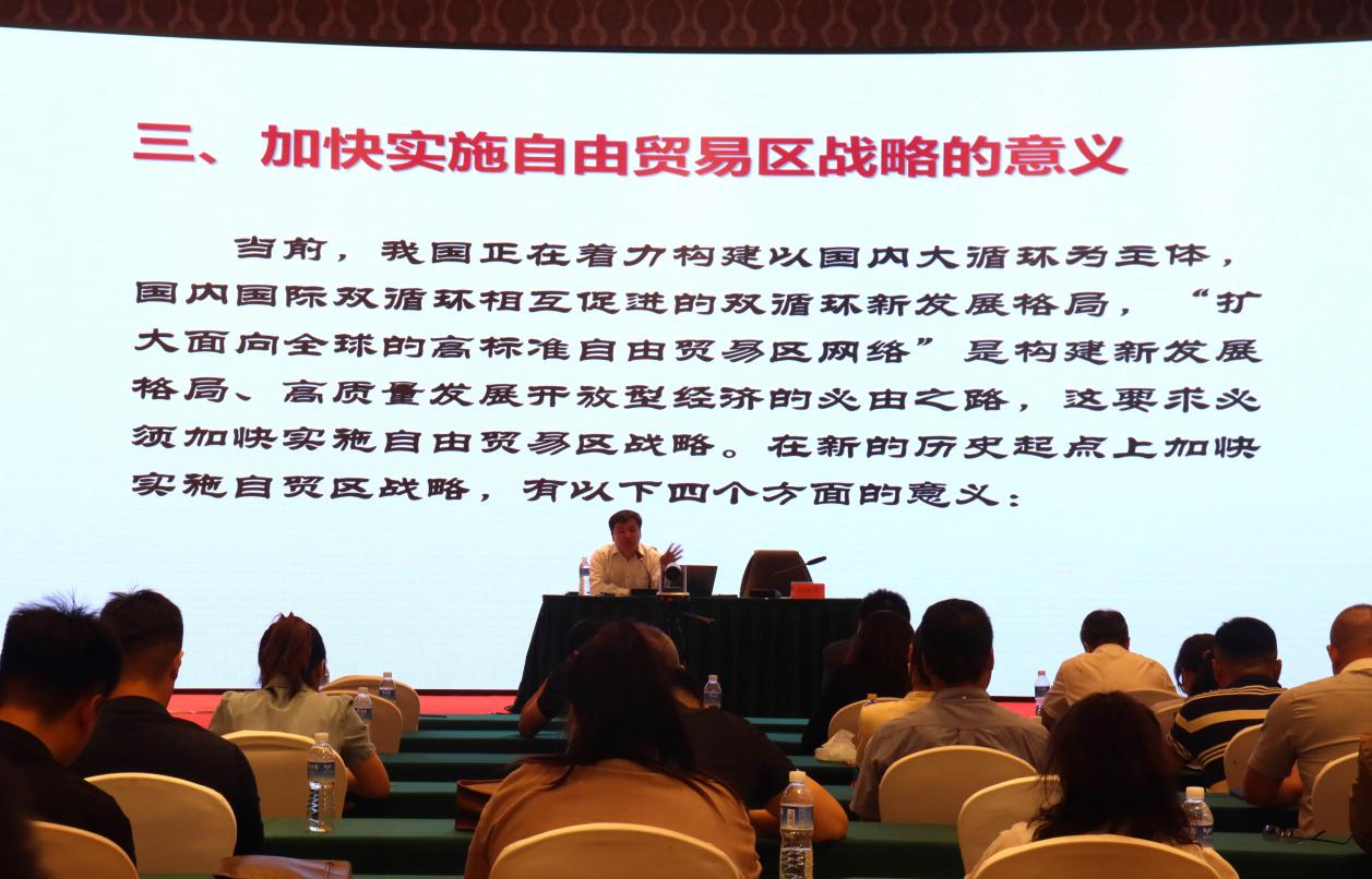 7月20日,在内蒙古宣传部、商务厅举办的“打造我国向北开放重要桥头堡”研讨会上,以“习近平总书记边疆经济思想和内蒙古战略定位”发表演讲,25日上午,由黑龙江省商务厅、黑龙江省贸促会主办的自由贸易区建设及对俄经贸法律实务培训在哈尔滨市举行,李光辉经理出席培训会,并就《实施自贸区提升战略,高质量发展开放型经济》主题演讲。他从加快实施自由贸易区战略的意义、面临的新形势与新要求以及我国自由贸易区提升战略的重点方向等方面展开论述。