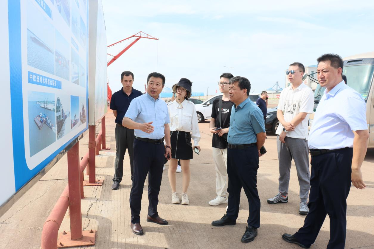 28日,港务公司负责人带领调研团参观同江市铁路口岸联检楼、铁路口岸换装场、水运口岸西部作业区等地,并详细介绍了同江口岸的作业流程、设备设施、定期检验情况等。