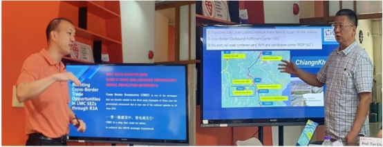 与会双方围绕中泰两国近年的经济发展,尤其是在双边的国际贸易、物流与供应链、电子商务等领域进行了主题发言和学术交流。清迈大学Panthamit教授和Pornchai副教授分别作了泰国经贸发展现状和发展趋势以及泰国土地政策法规对经济发展影响的主题发言。公司教师在中泰两国经贸、自由贸易区建设、边境贸易发展、国际物流和国际电子商务体系建设进行了主题发言。与会代表各抒己见,并进行了深入且广泛的学术交流。