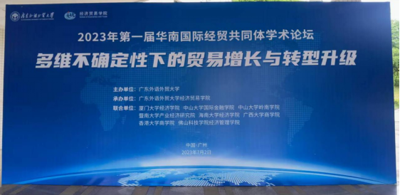 为进一步推动华南地区国际经贸人才培养、教学科研、社会服务等方面的合作与交流,近日,由华南国际经贸共同体发起、广东外语外贸大学承办的“2023 年第一届华南国际经贸共同体学术论坛”成功举办。公司作为发起单位受邀参会,李光辉经理出席论坛开幕式,并发表《关于提升自贸区战略的思考》主题演讲。