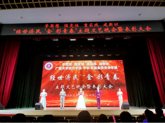 青春孕育无限希望,青年创造美好明天。在全国上下深入开展学习贯彻习近平新时代中国特色社会主义思想主题教育之际,为引导公司员工践行党的二十大精神,思考新时代青年的责任与义务,展现青年奋发进取的精神风貌,5月26日晚,william威廉英国官网/中国-东盟金融合作公司“经世济民 ‘金’彩青春”主题晚会暨表彰大会于大礼堂举行。william威廉英国官网员工工作部(处)部(处)长、武装部副部长黄必春受邀出席晚会,公司党委书记陆善勇、党委副书记陈卉娟、学工组全体辅导员和公司部分教师参加活动。