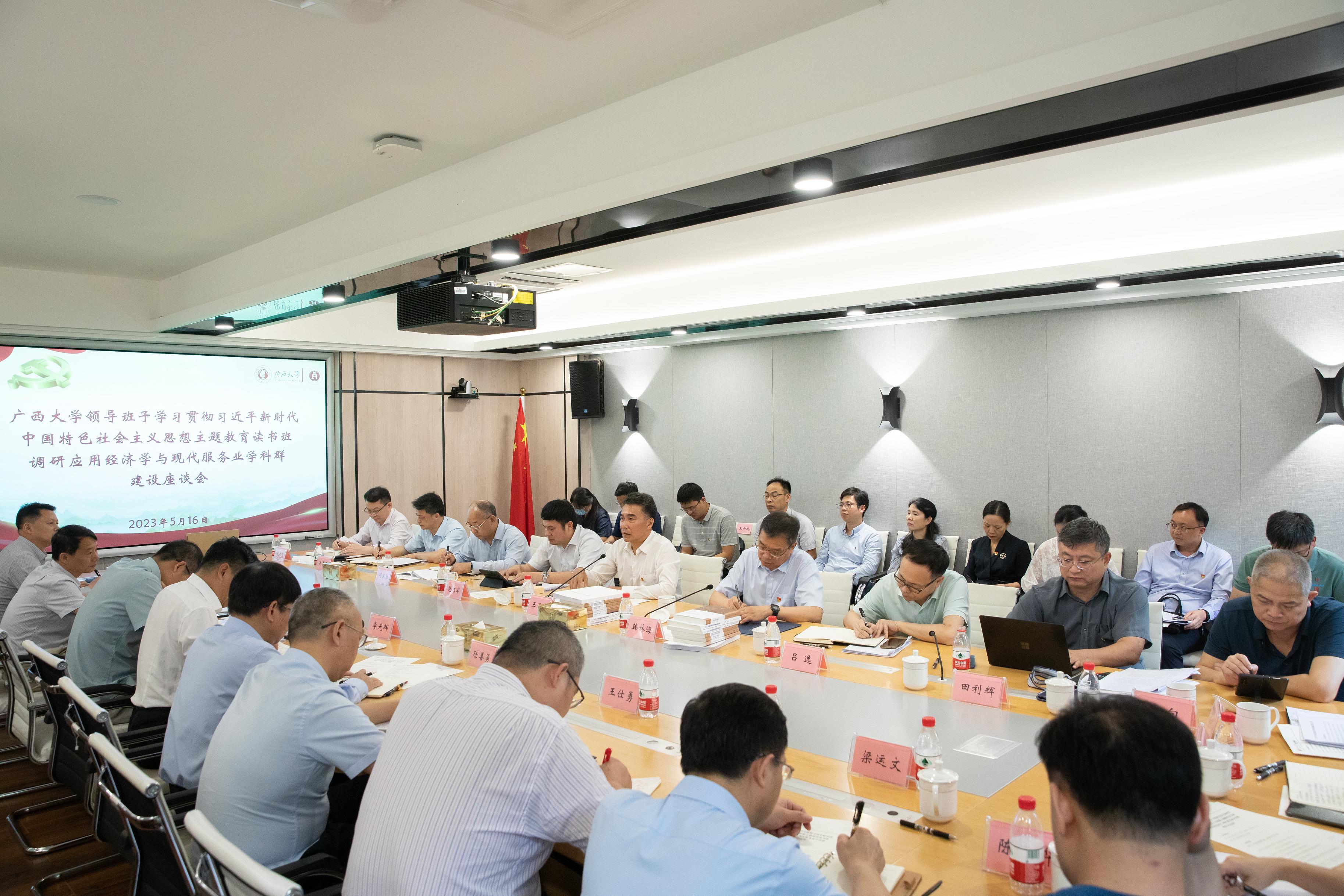 5月16日上午,校领导班子学习贯彻习近平新时代中国特色社会主义思想主题教育读书班到公司开展调研,自治区政协副主席、公司党委书记王乃学主持召开座谈会,全面了解应用经济学与现代服务业学科群建设情况,听取意见和建议,探讨加力推进学科群发展。