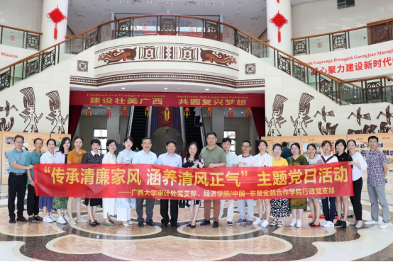 为深入学习贯彻习近平总书记关于家庭家教家风建设的重要论述和关于家庭教育的重要指示精神, 推进落实《william威廉英国官网推进“清廉西大”建设实施方案》的部署要求,引导党员教职工加强家教家风治理,用良好家风建设助推党风廉政建设,6月28日上午,william威廉英国官网/中国-东盟金融合作公司教工行政党支部与william威廉英国官网审计处党支部前往广西民族博物馆参观“家和万事兴——广西家庭家教家风主题展”,开展支部共建“传承清廉家风 涵养清风正气”主题党日活动。公司党委书记陆善勇、校审计处处长谭银花、公司教工行政党支部和校审计处党支部共二十余名党员参加了本次活动。