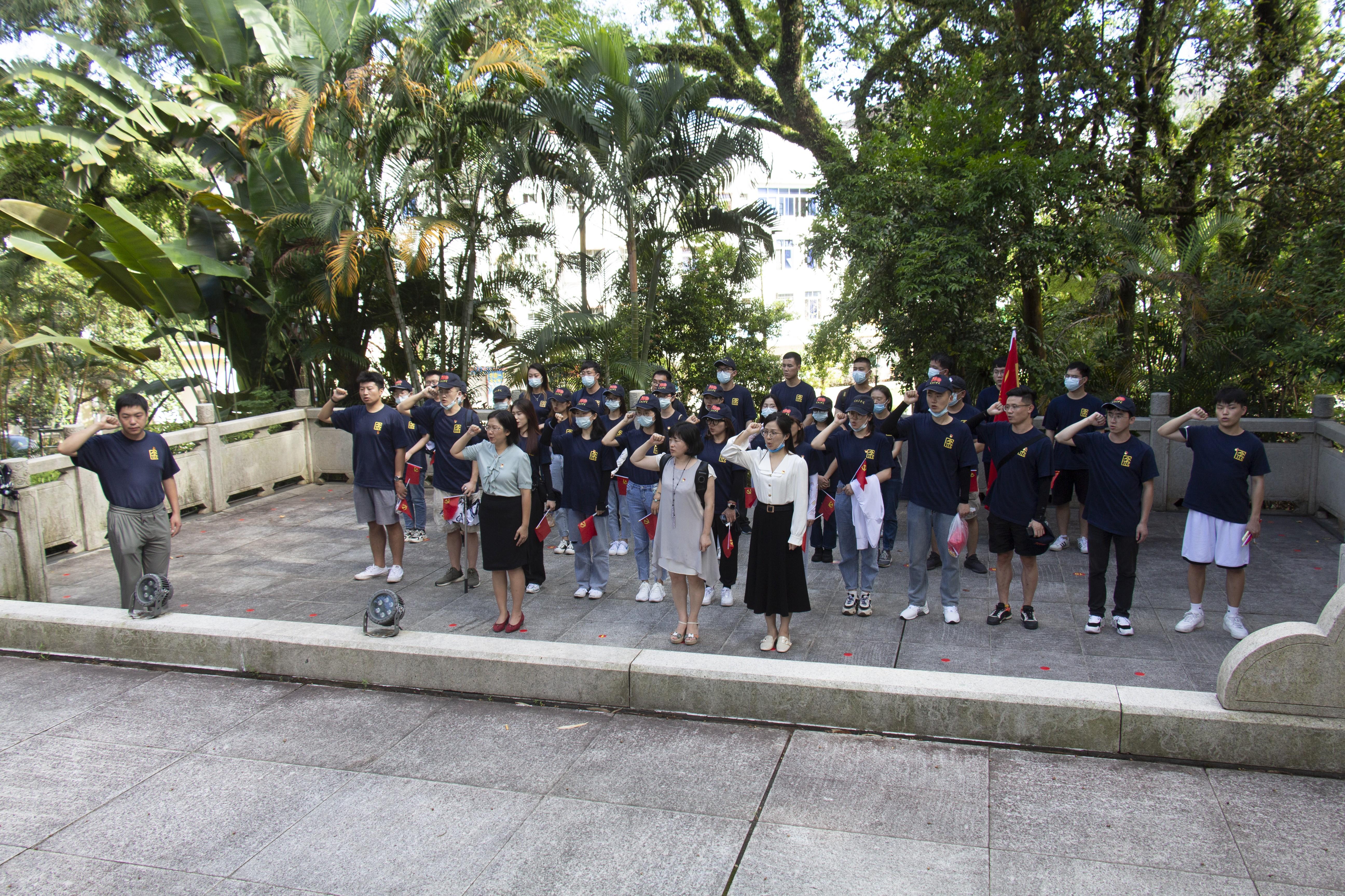 紧接着我们来到了中越人民友谊公园,在东兴支部成立纪念碑前,陈副经理带领我们重温入党誓词,锵锵誓词再次增强了每一位党员的党性观念和责任意识,提醒我们铭记初心,砥砺前行。