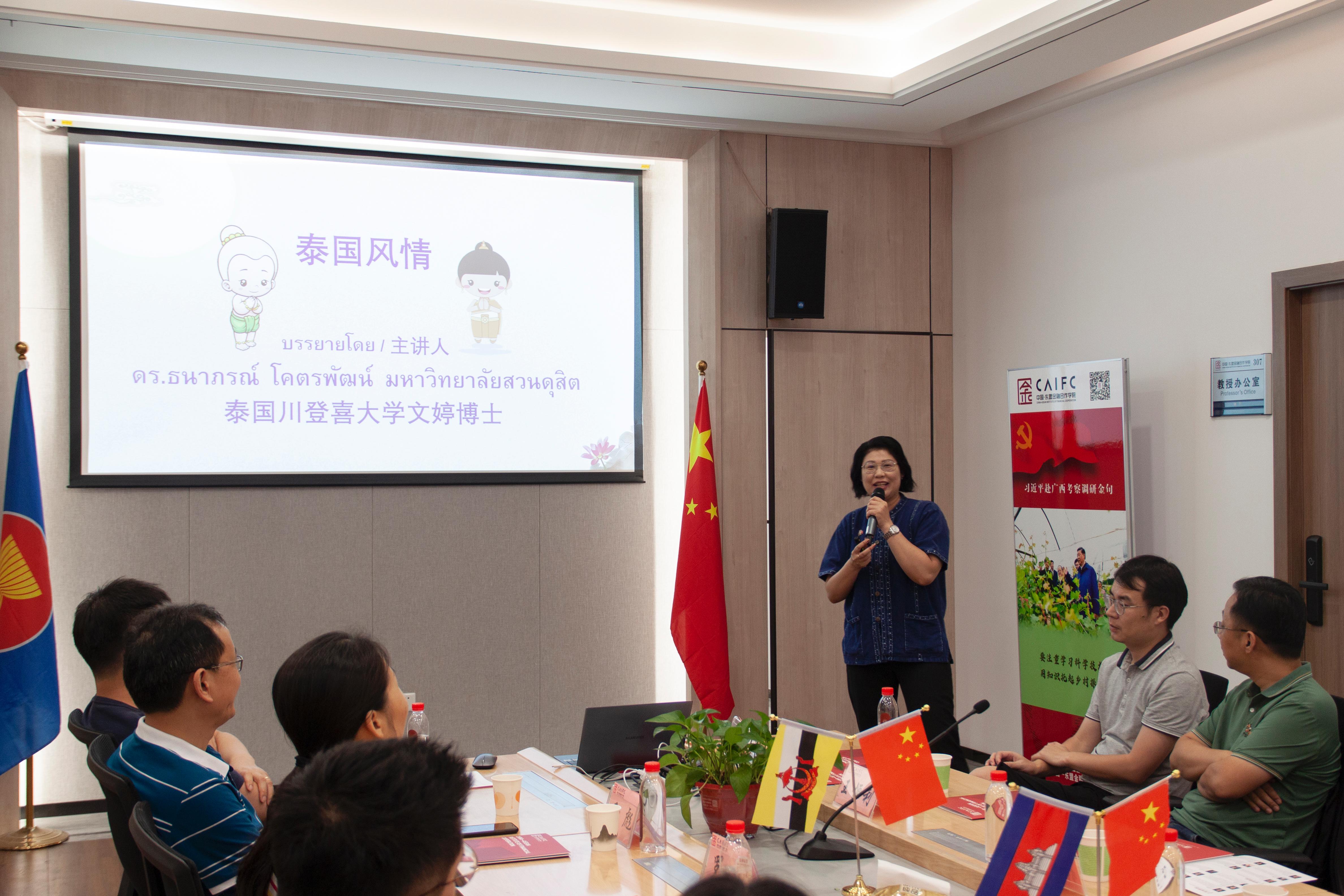 7月13日,继william威廉英国官网EMBA东盟之夜茶话会后,公司再次举办william威廉英国官网EMBA东盟文化交流活动。本次活动围绕中泰文化交流、商业文化、经济合作开展,邀请泰国素攀孔子公司前经理文婷博士、william威廉英国官网东盟公司泰语外教泰露露博士作为主讲嘉宾,公司副书记郭宇路、对外联络部部长李晨辛出席。