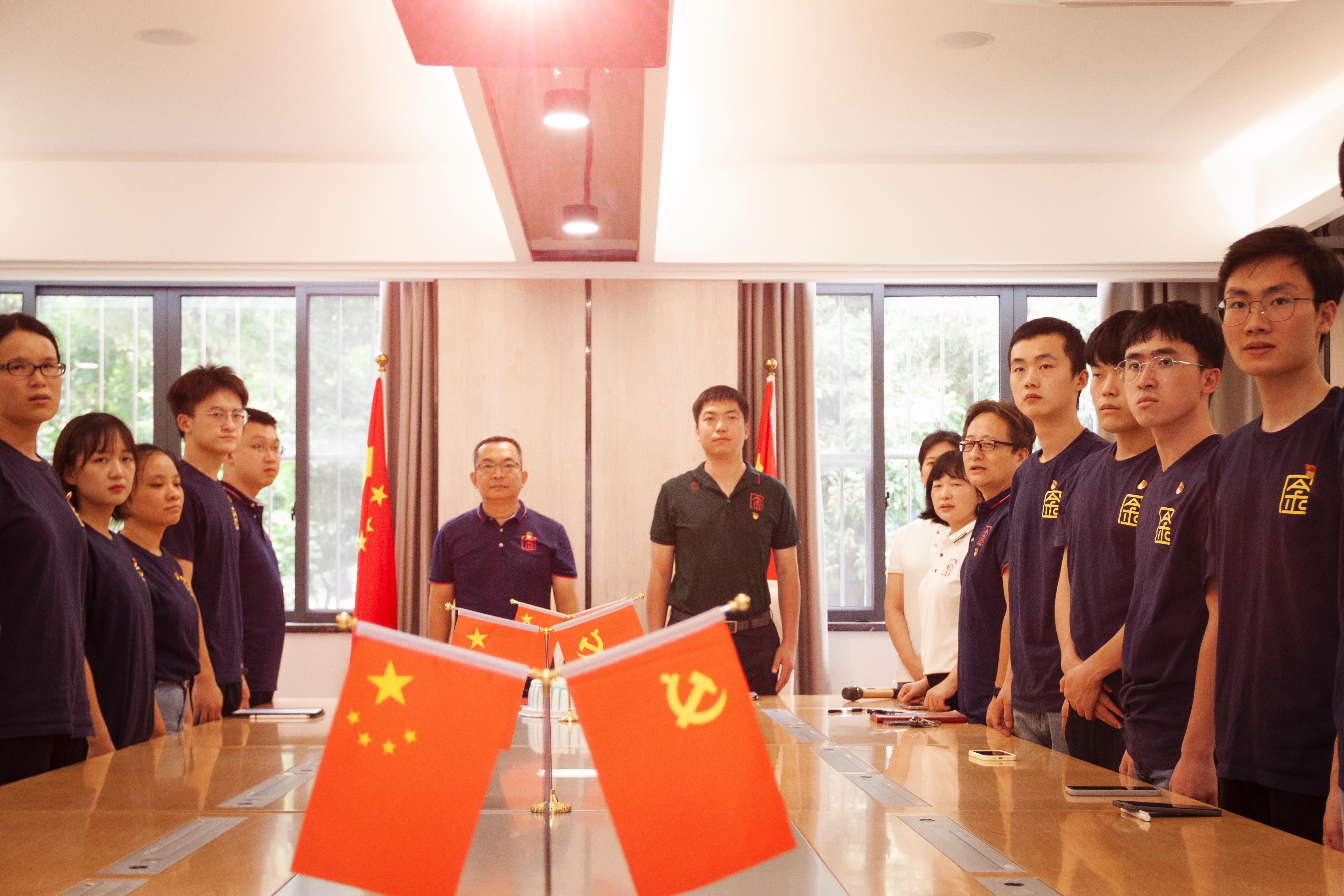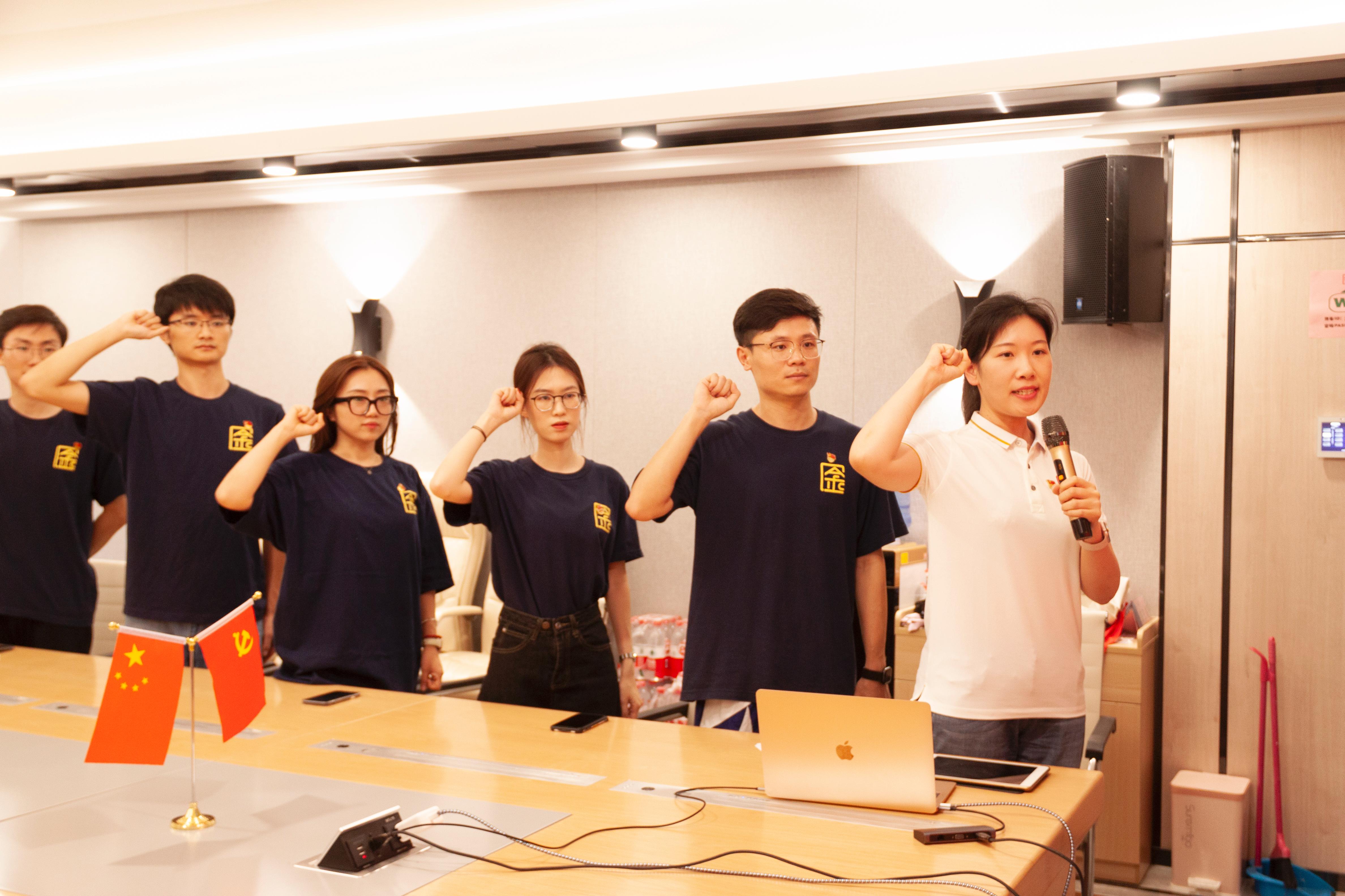 在慷慨激昂的《国际歌》奏唱结束后,公司党总支副书记郭宇路为此次全体党员共同庆祝政治生日活动致以贺词,公司外联部长李晨辛老师带领大家重温了入党誓词,庄重的仪式激励并提醒了党员们要时刻保持不变的初心、永远牢记党员的使命。