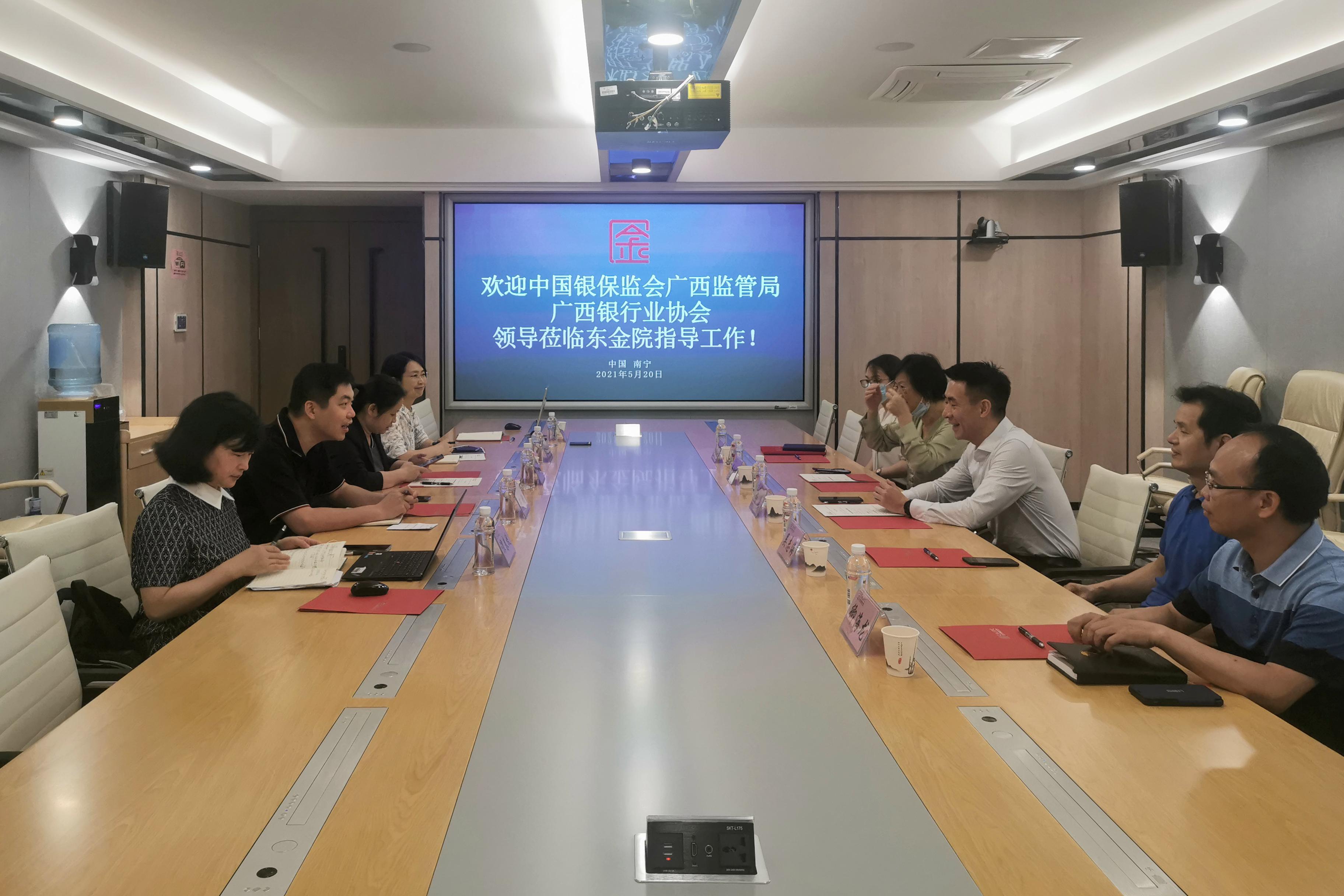 5月20日上午,中国银行保险监督管理委员会广西监管局纪委书记杨波,副书记吴志海,广西银行业协会常务专职副会长韦向玲一行到公司进行工作会谈交流。公司副书记、常务副经理陈懿,副经理梁淑红,副经理谭春枝,副经理熊新星出席会谈。