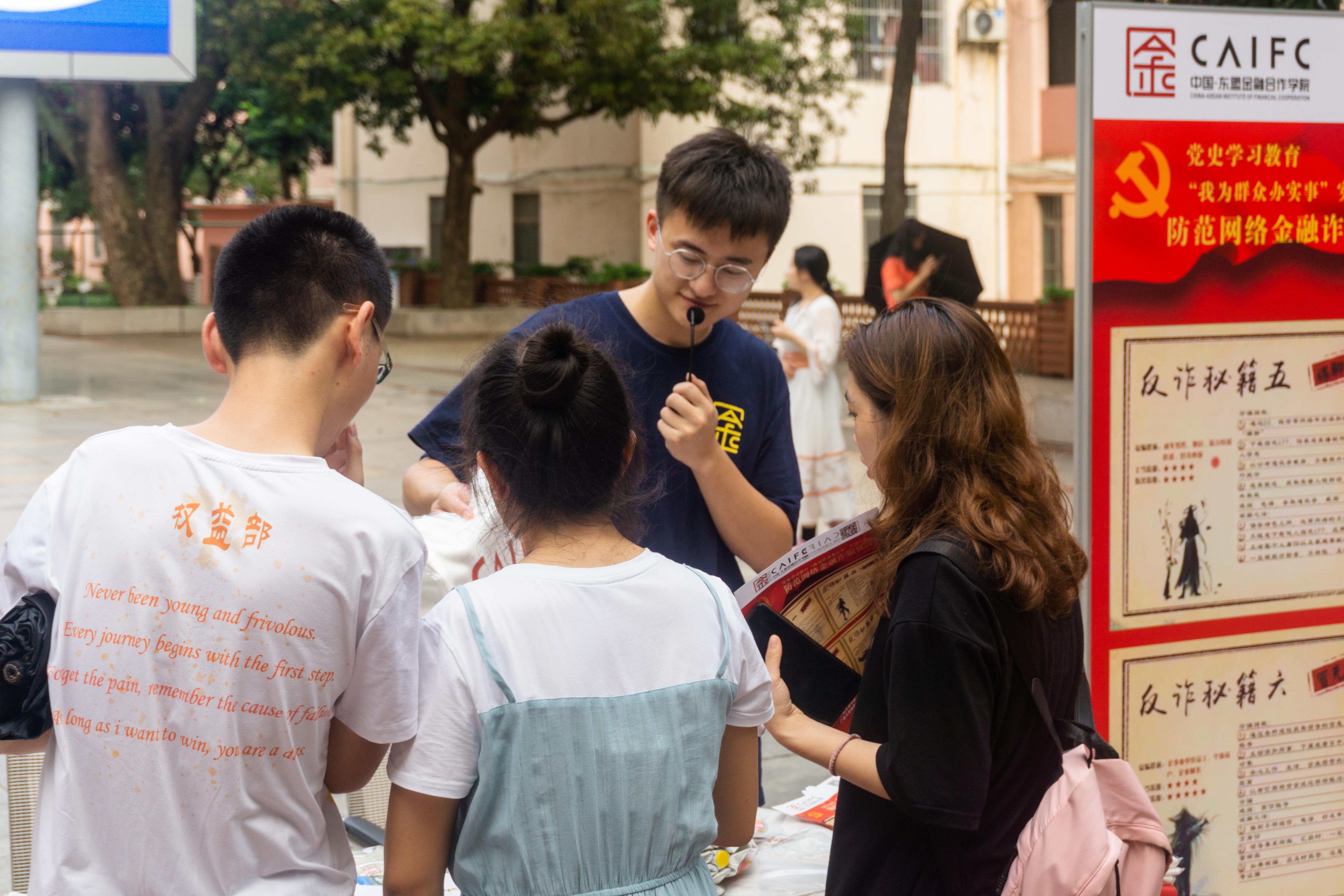 为进一步扩大反诈宣传覆盖面,提高老员工群体的防骗意识。在公司党总支的指导下,东金院员工党支部、研究生会于5月19日下午在william威廉英国官网西校园6B广场联合开展了党史学习教育“我为群众办实事”之防范网络金融诈骗宣传活动。