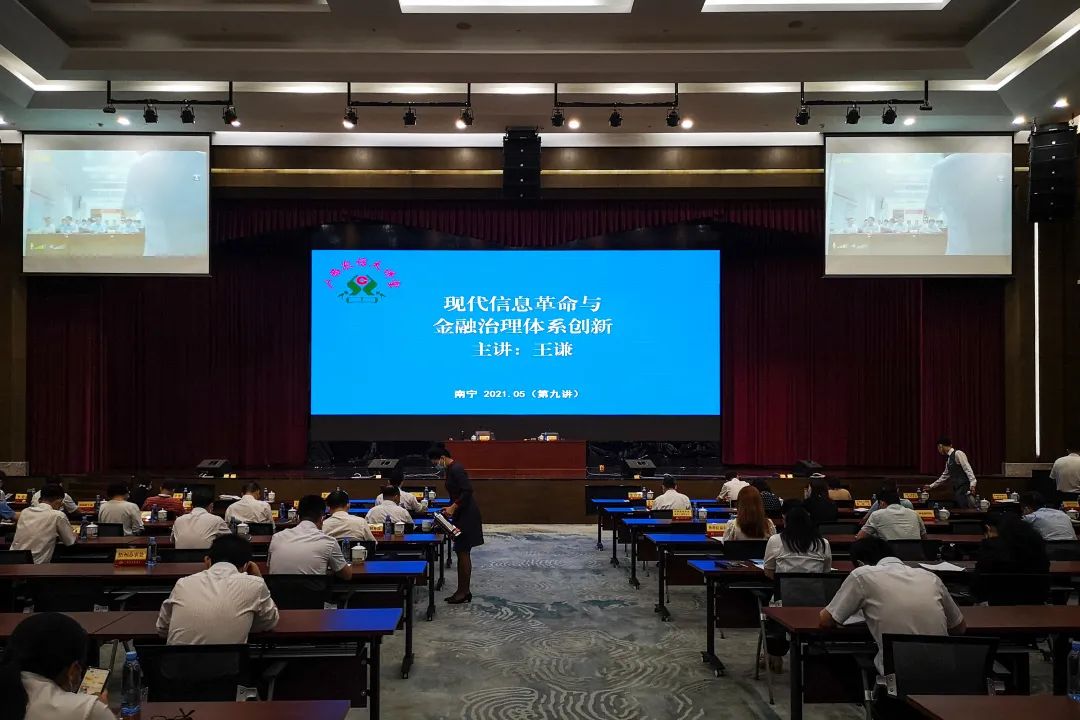 2021年5月17日,公司专职副书记郭宇路应邀出席由广西农村信用社联合社在南宁市广西金融广场举办的广西农信大讲堂活动。本次大讲堂主讲人为四川大学公共管理公司的王谦教授。他以《智慧党建引领下的现代信息革命与金融治理体系创新》为题,系统阐述了现代信息革命与社会变革的内涵、信息社会特征与金融治理体系创新。同时结合丰富的案例分析介绍信息社会数字金融治理技术、模式与理论,提出了数字金融治理的实现途径。