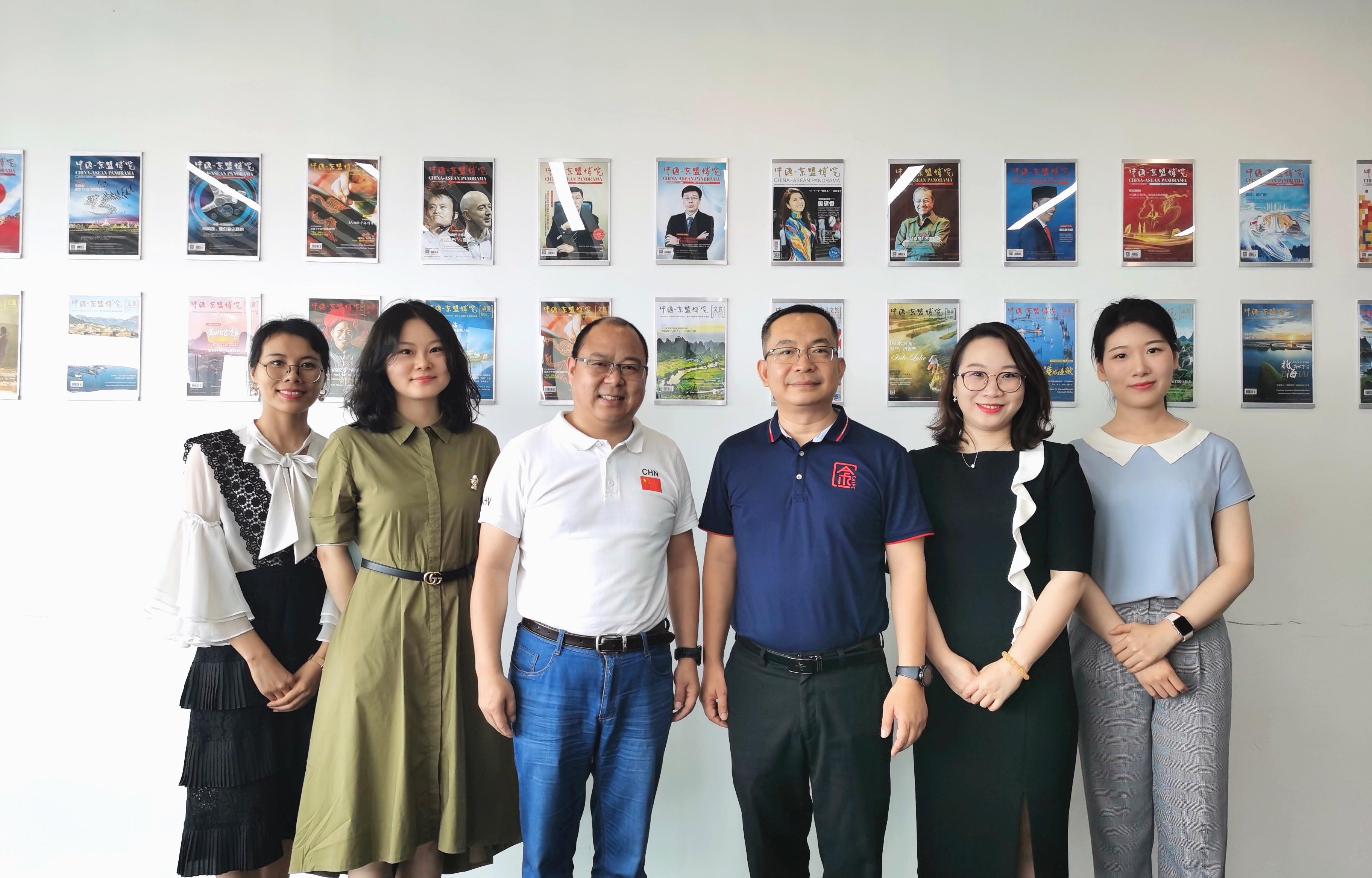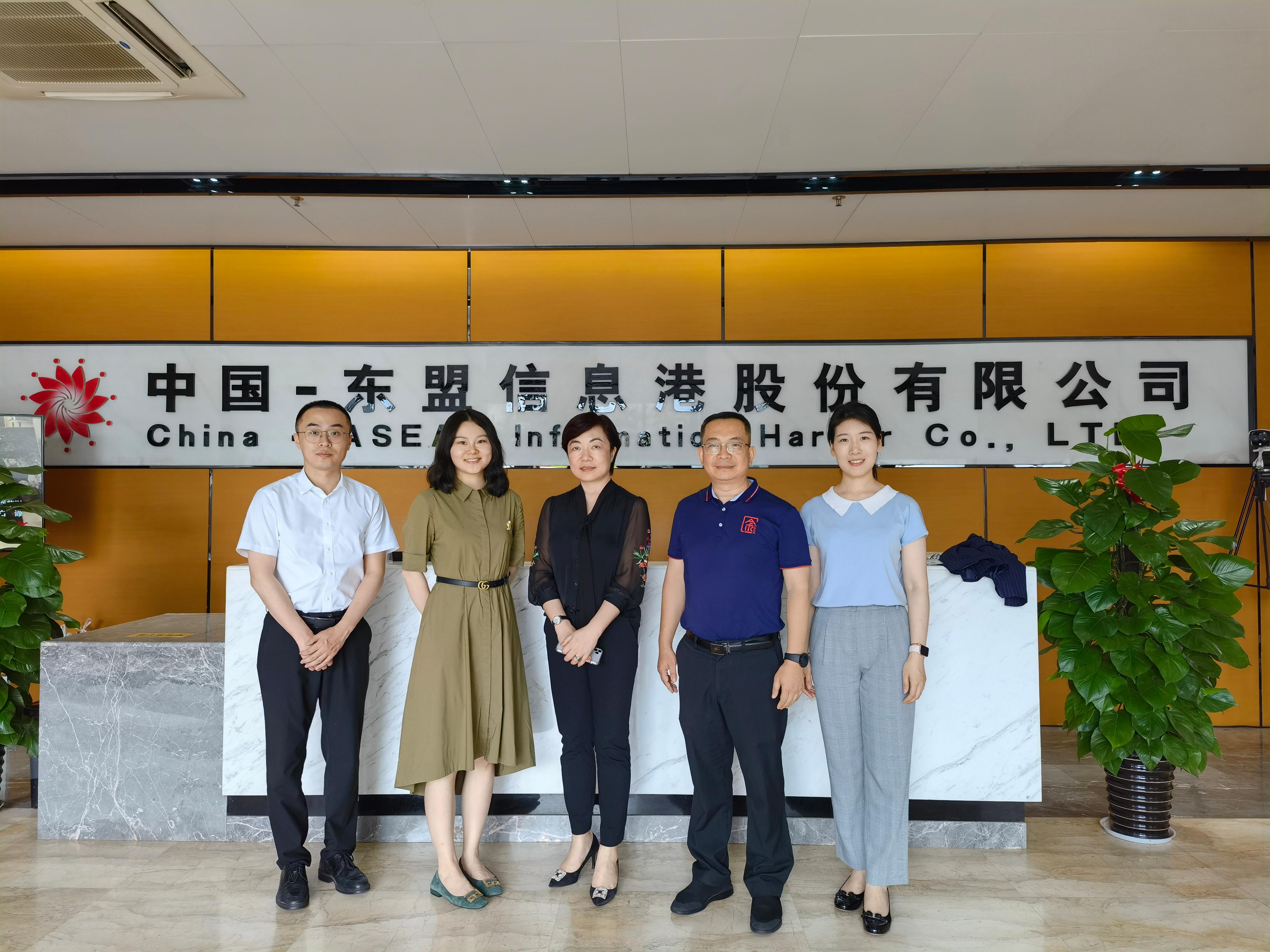 2021年5月14日,公司专职副书记郭宇路、对外联络部部长李晨辛,携公司合作伙伴远见教育的教育培训总监孙晓静,一同拜访了中国—东盟博览杂志社(简称“东博社”)和中国—东盟信息港有限责任公司(简称“中国东信”)。