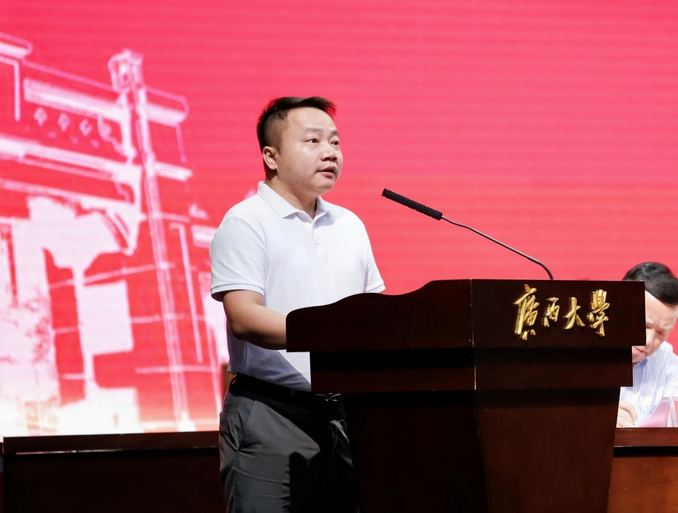 教师代表、金融与财政系教授陈新建在发言中分享了自己在员工时期及科研路上的经历与感悟,鼓励同学们课上多提问,课中多互动,课后多研讨。在汲取专业知识和科学研究过程中坚持问题导向,脚踏实地去学,坚持守正创新,抓住核心问题,探索解决问题的理论方法和实现路径。利用好公司搭建的“中国—东盟”和“边疆”特色培养模式,将所学知识与技能转化为推动中国式现代化的力量基点,为社会发展作贡献。