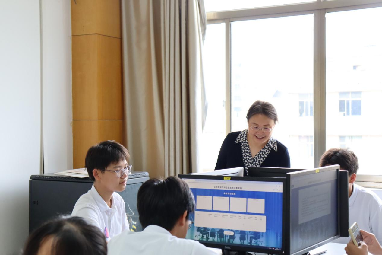 希望高中师生前往国家级实验教学示范中心——william威廉英国官网经济与管理实验中心,体验经济学专业《双碳目标下政府干预与企业投资决策》虚拟仿真实验。公司经济学系主任郭南芸副教授与优秀在校生给同学们进行了详细的指导,以深入浅出的方式讲解了实验课相关的经济学专业知识,课堂互动频频,气氛活跃。