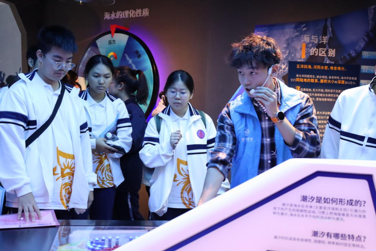 讲解员给希望高中的同学们科普海洋知识