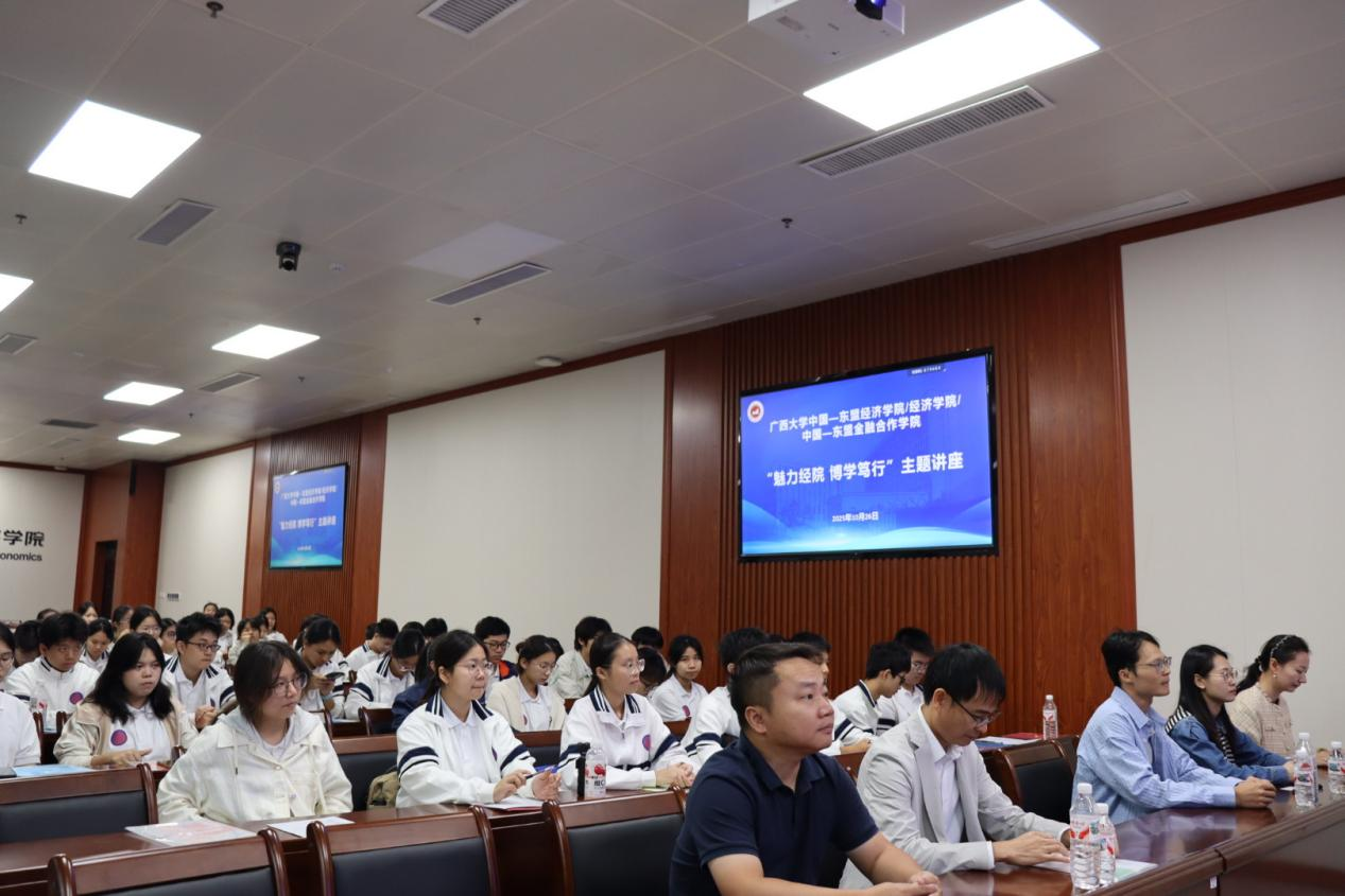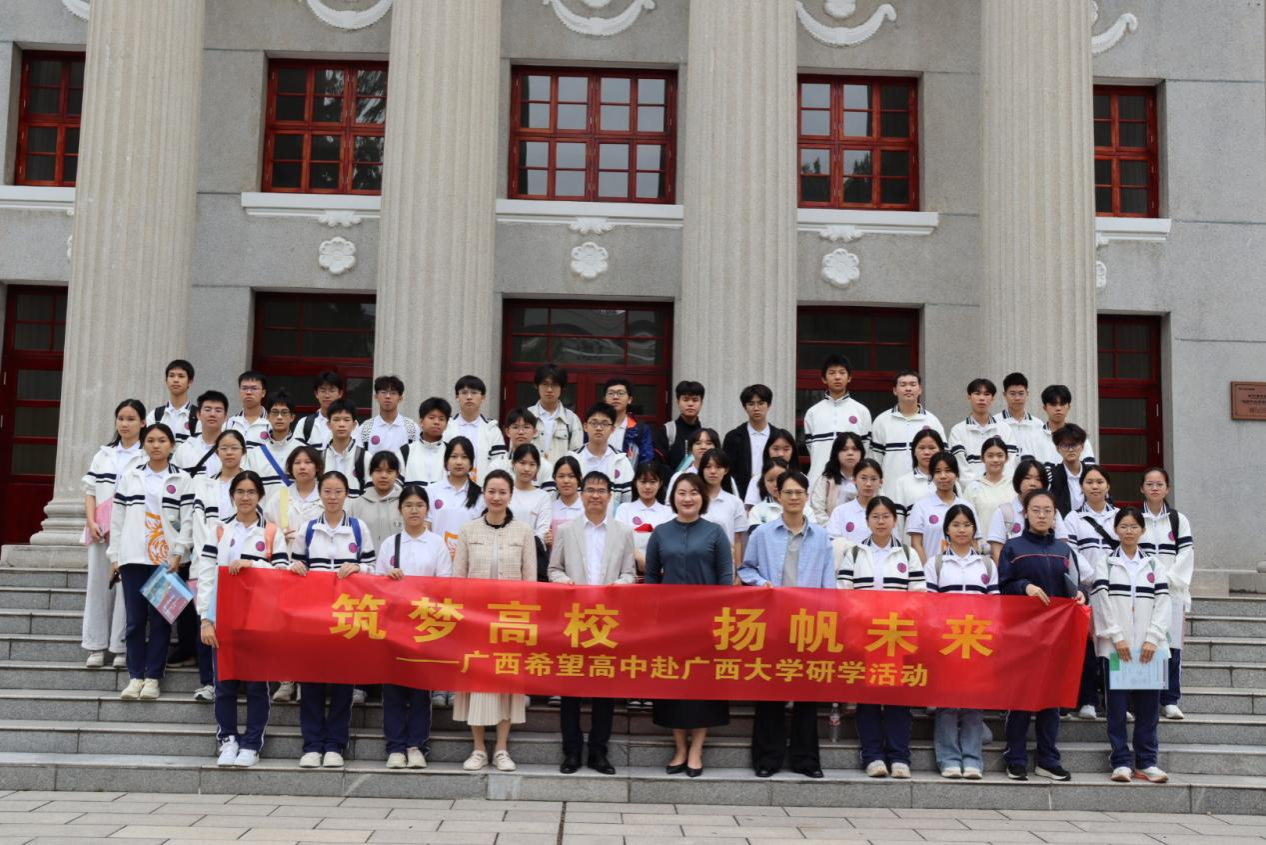 为拓展高中生学术视野,激发未来学习的热情,架起高中生与公司之间的桥梁,2025年10月26日,广西希望高中年级董事长汤海生、陆荣贝一行2名教师带领50名高一员工到公司开展“筑梦高校 扬帆未来”主题研学活动。公司党委副书记刘梦娟、金融系陈新建教授、本科教学办公室相关老师参加本次活动。