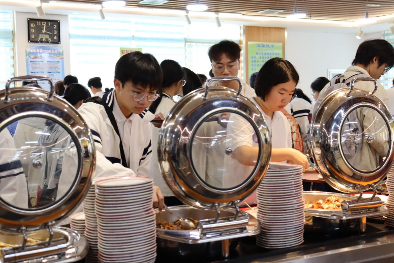 同学们品尝本校食堂的美食