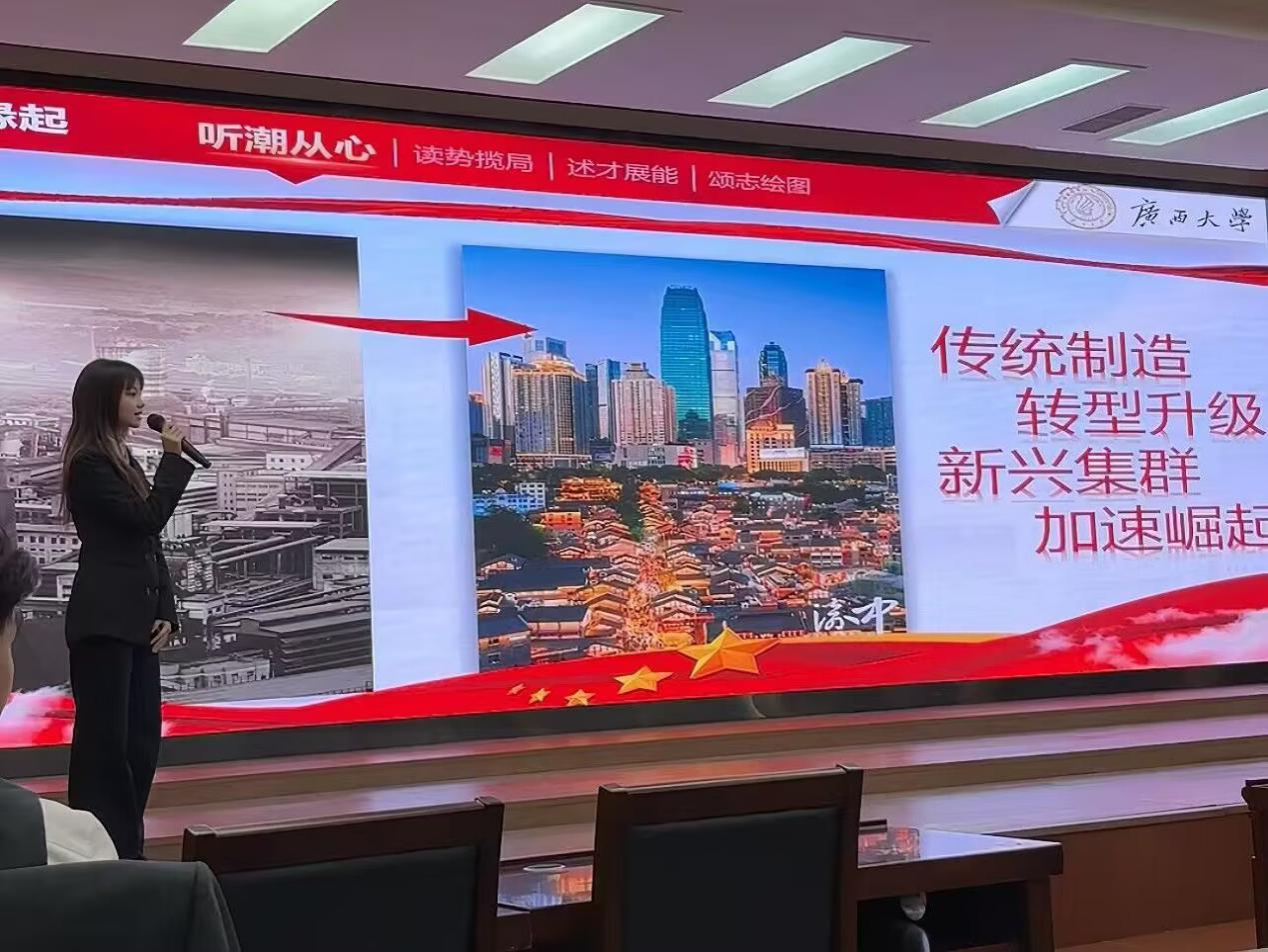 作为一名国际经济与贸易专业的员工,国际经济与贸易2023级本科生柯贤婷将目光投向了广西与东盟互联互通的广阔市场。她对核心课程浓厚的兴趣和对专业知识的积累,逐渐汇聚成职业探索的底气。她主动关注东盟经贸政策动态,研究跨境贸易的行业趋势,在一次次地学习与思考中,“成为一名优秀的外贸员”这一职业目标愈发清晰。