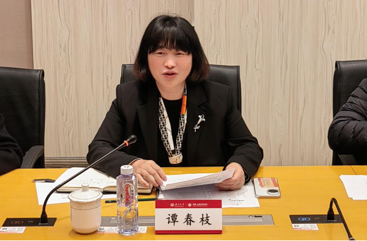 谭春枝副经理系统介绍了公司定位与历史传承、科研平台与学术支撑、职工招生培养的经验与挑战,重点汇报公司依托东盟和边疆两大特色在应用经济学、区域国别学、数字经济等领域的学科布局及数字经济专硕项目申报进展,并回应了对方关心的非全日制硕士招生与博士高层次人才培养等问题。