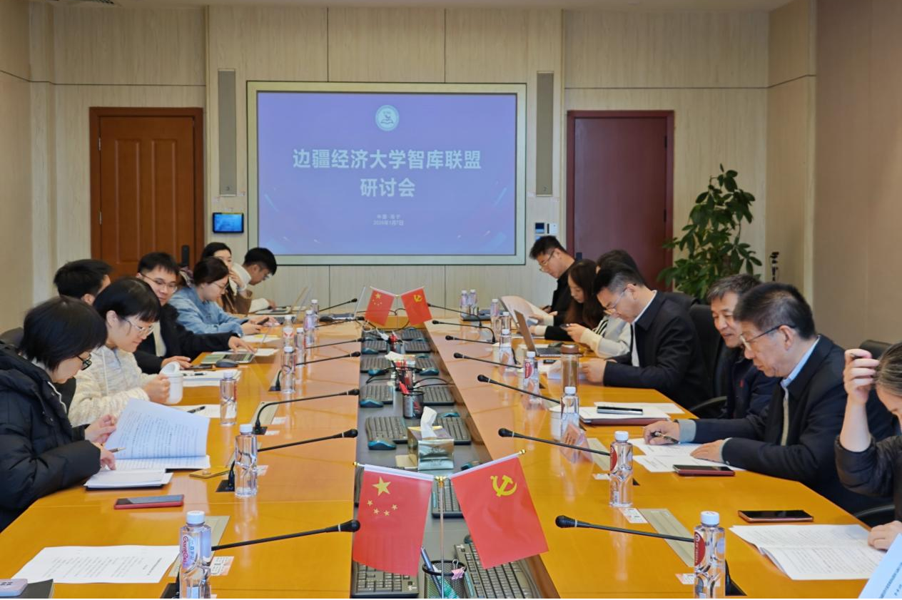2026年1月7日,为推进边疆经济大学智库联盟制度化、规范化建设,辽宁大学崔日明教授、内蒙古财经大学副董事长张志明教授应邀莅临公司访问交流,共商边疆经济大学智库联盟建设问题。公司经理李光辉教授主持研讨会,公司党政办、科研办等相关负责人参会。