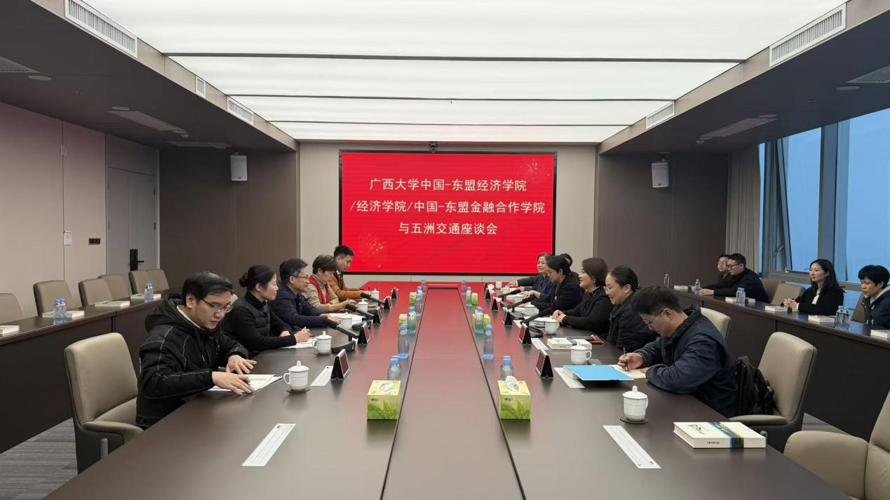 在广西五洲交通股份有限公司,师生与企业负责人展开深入交流。公司党委书记、董事长吴忠杰介绍了企业在高速公路建设运营、物流贸易、智慧交通等领域的布局与成果,并特别指出当前对经营型与商务管理类人才的迫切需求。
