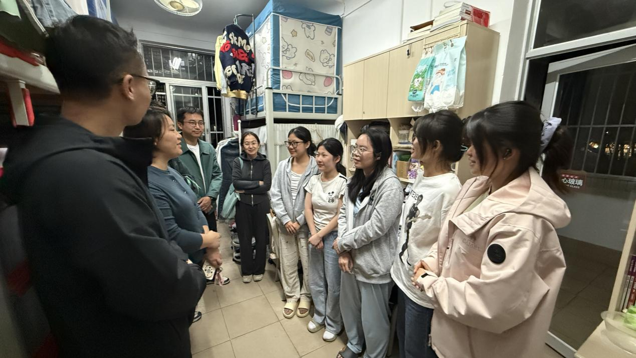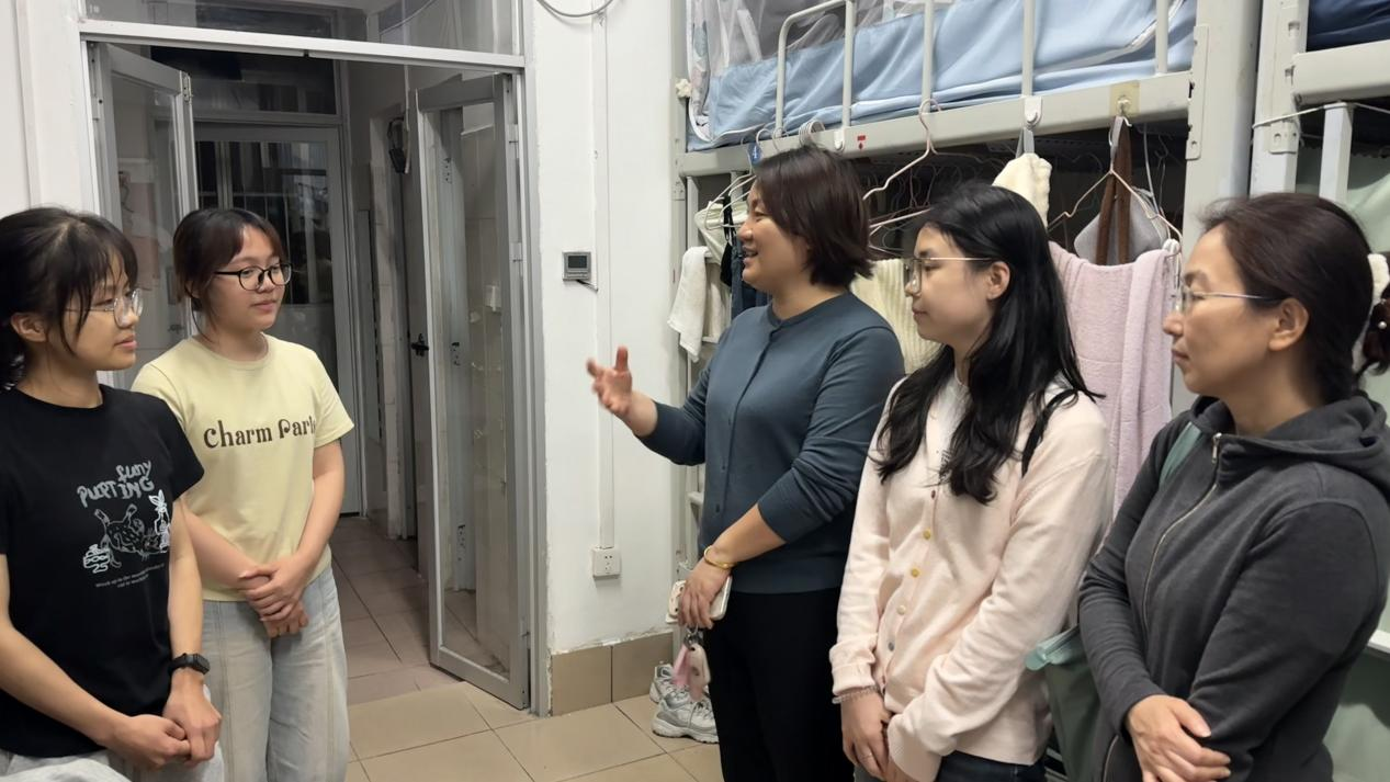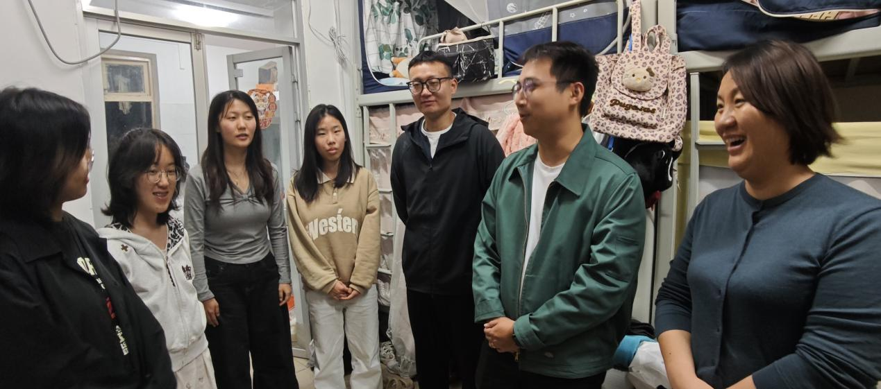 走访过程中,老师与同学们亲切交谈,细致询问生活适应与学业规划情况,现场察看宿舍环境与设施状况。老师们叮嘱大家及时清理卫生死角、规范物品摆放,共同维护整洁居住环境;面对潮湿天气,提醒每日开窗通风、定期晾晒被褥,从源头杜绝霉菌滋生。结合开学节点,引导同学们调整作息、制订学习计划,以饱满状态投入新学期;同时鼓励室友间多沟通包容、互帮互助,营造团结友爱的宿舍氛围,让宿舍成为成长路上的温暖港湾。