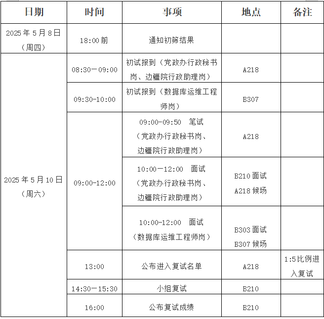 党政办行政秘书岗、边疆院行政助理岗、数据库运维工程师岗各1名。