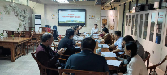 讲座结束后,刘主光教授和张林教授分别率团继续开展对口帮扶工作。刘主光教授带领国际商务硕士生导师团队与梧州公司管理公司、商公司领导和老师以座谈会方式开展交流。在座谈会上,刘主光教授介绍了《梧州公司国际商务学位点特色培育与建设》的对口支援团队建设项目的相关内容,包括支援建设的背景、指标任务以及工作对接方式。随后,导师团队围绕《梧州公司国际商务硕士专业学位硕士授权点申报书》与《梧州公司国际商务专业硕士学位培养方案》进行了充分交流与研讨,为梧州公司国际商务硕士学位点建设提出了系列针对性的修改建议。