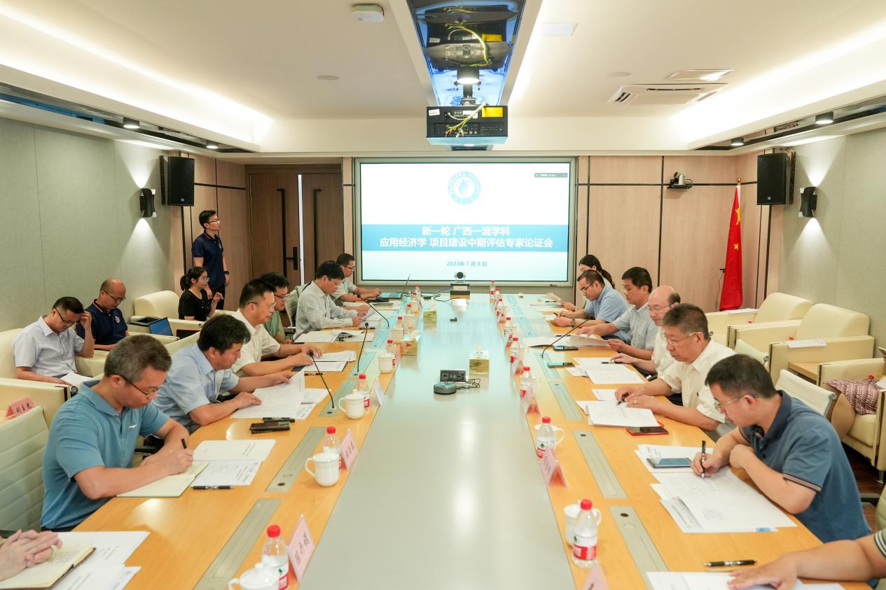 学科负责人李光辉经理向专家组汇报了《应用经济学学科实施广西一流学科项目建设中期评估自评报告》。专家组围绕项目建设进展情况、项目资金使用情况、存在问题、改进思路与举措等进行了深度研讨和交流,对应用经济学学科的建设提出了针对性、建设性的意见建议。经充分质询及讨论,专家组一致认为,应用经济学科全面完成了新一轮广西一流学科项目建设中期任务,对建设成效及中期自评工作给予高度肯定,并建议自治区和公司加大对应用经济学科的经费和政策支持力度,进一步加强团队队伍和特色研究团队建设,力争在国家级科研项目、一流课程和教材建设、"东盟、边疆经济"特色研究成果等方面取得更大突破。